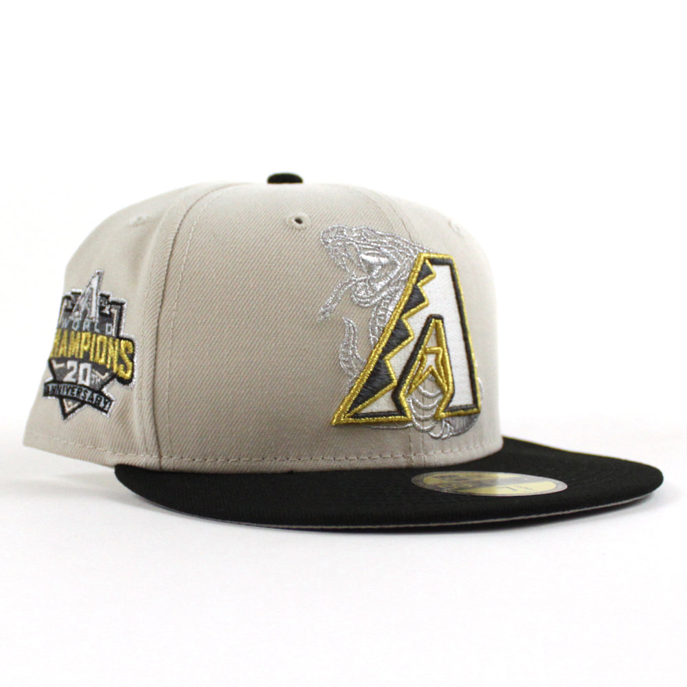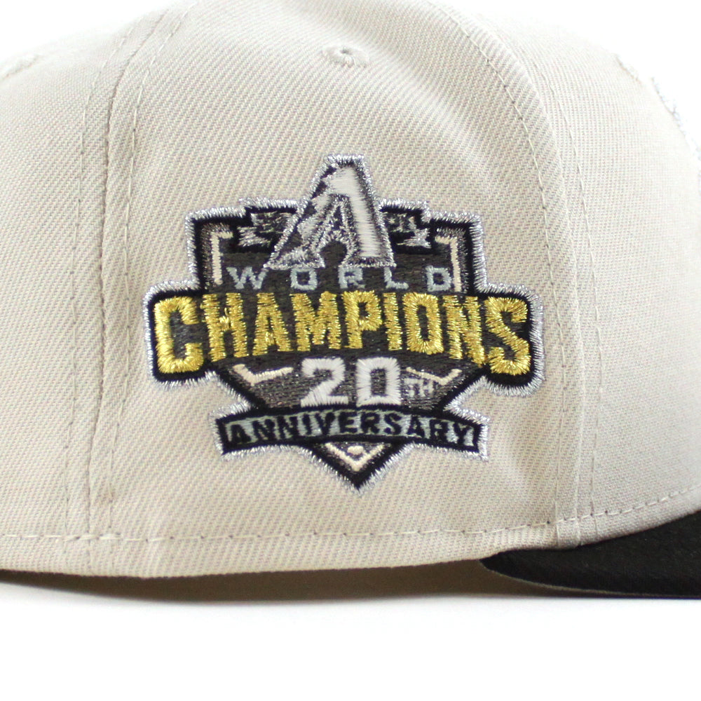 Arizona Diamondbacks WORLD CHAMPIONS 20TH ANNIVERSARY New Era 59Fifty Fitted Hat (Stone Black Gray Under Brim)