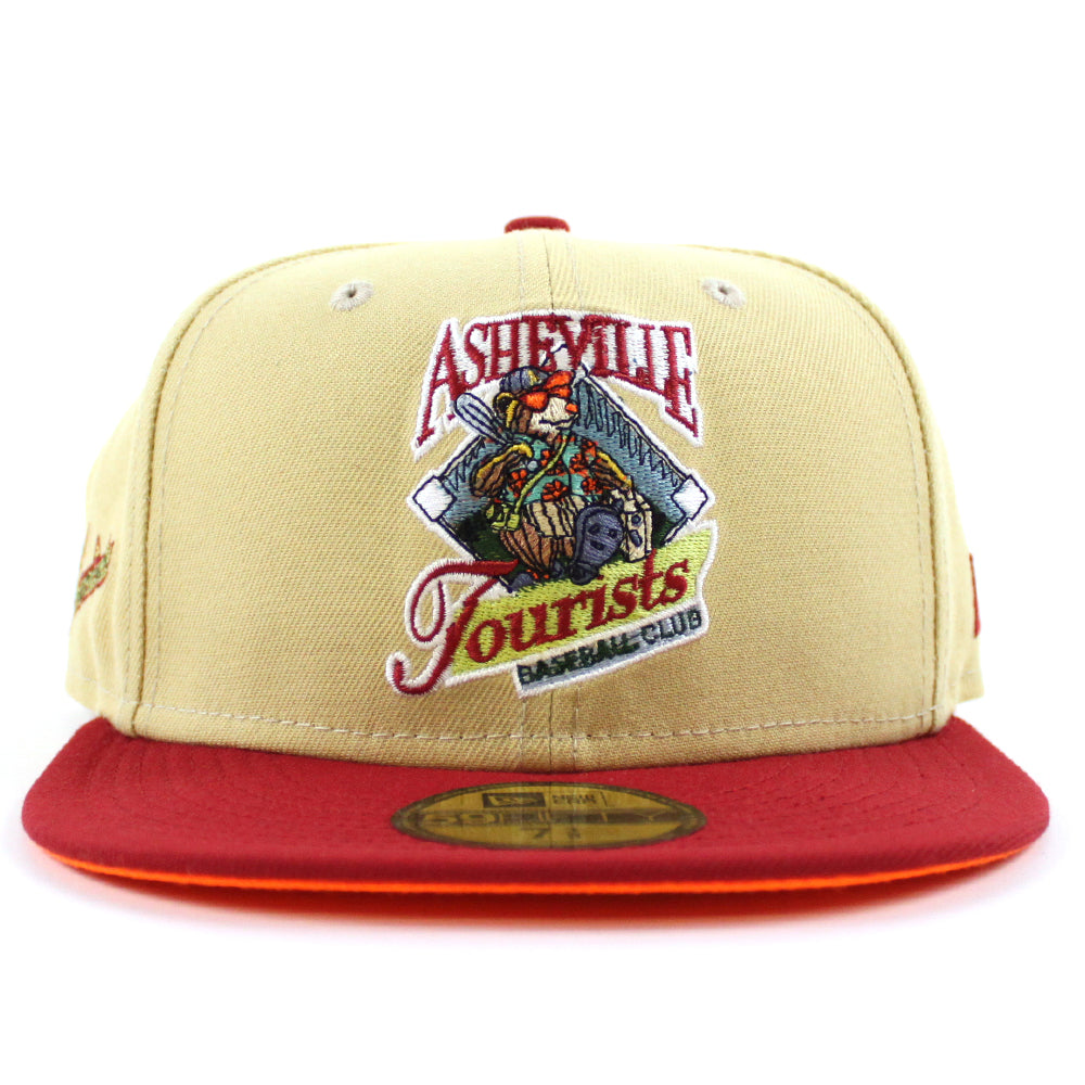 Asheville Tourist HomeTown Collection New Era 59Fifty Fitted Hat (VEGAS GOLD PINOT RED HUNTER FLAME ORANGE Under Brim)