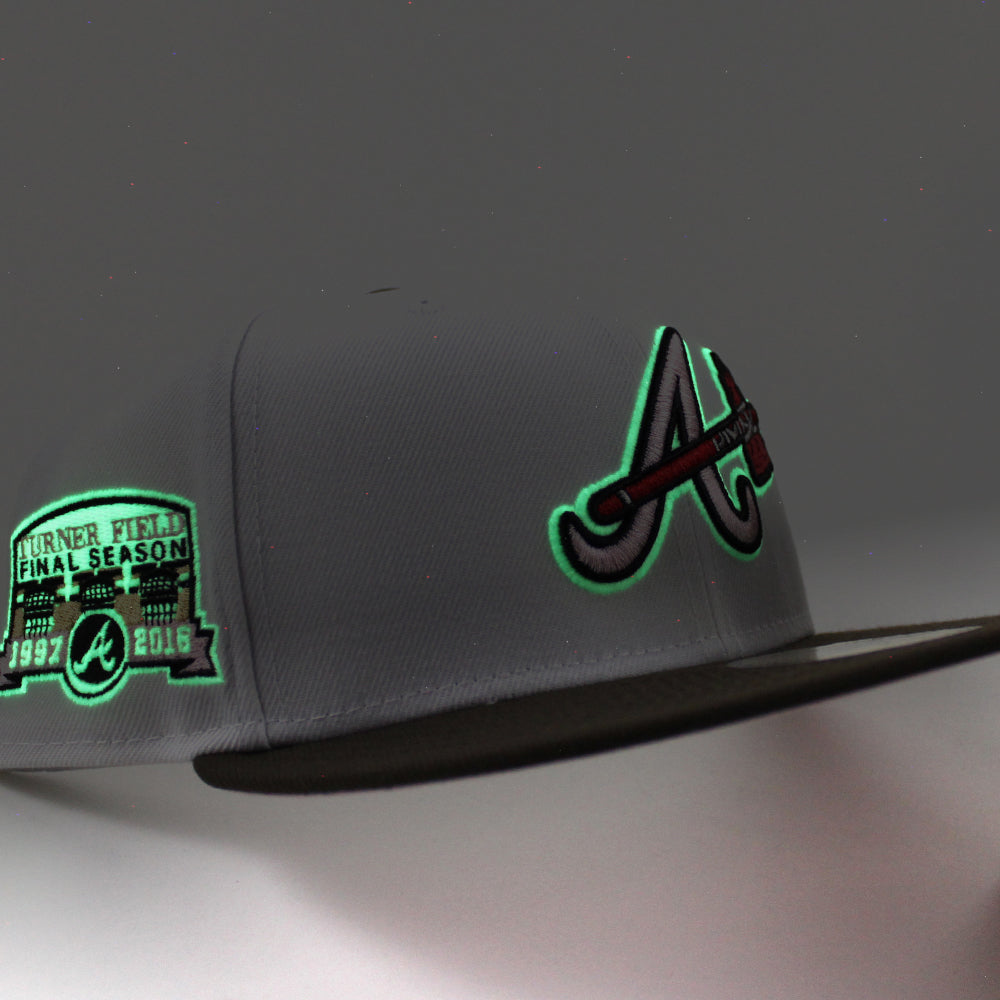 Atlanta Braves TURNER FIELD FINAL SEASON New Era 59Fifty Fitted Hat (GITD White Brown Pink Under Brim)