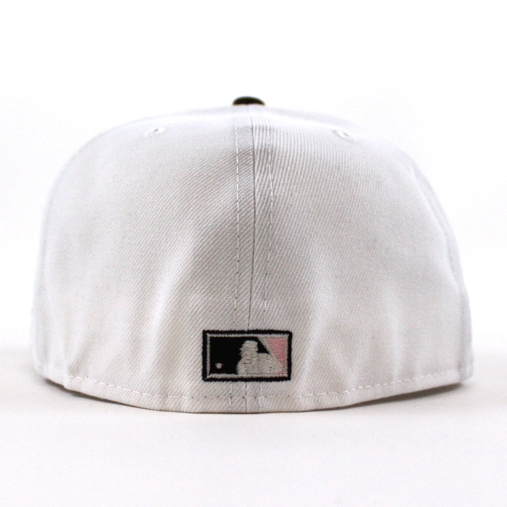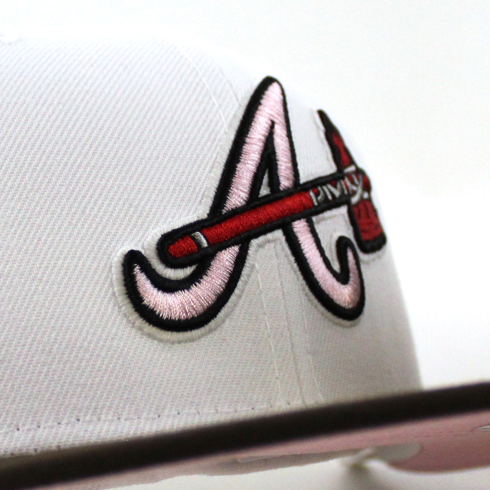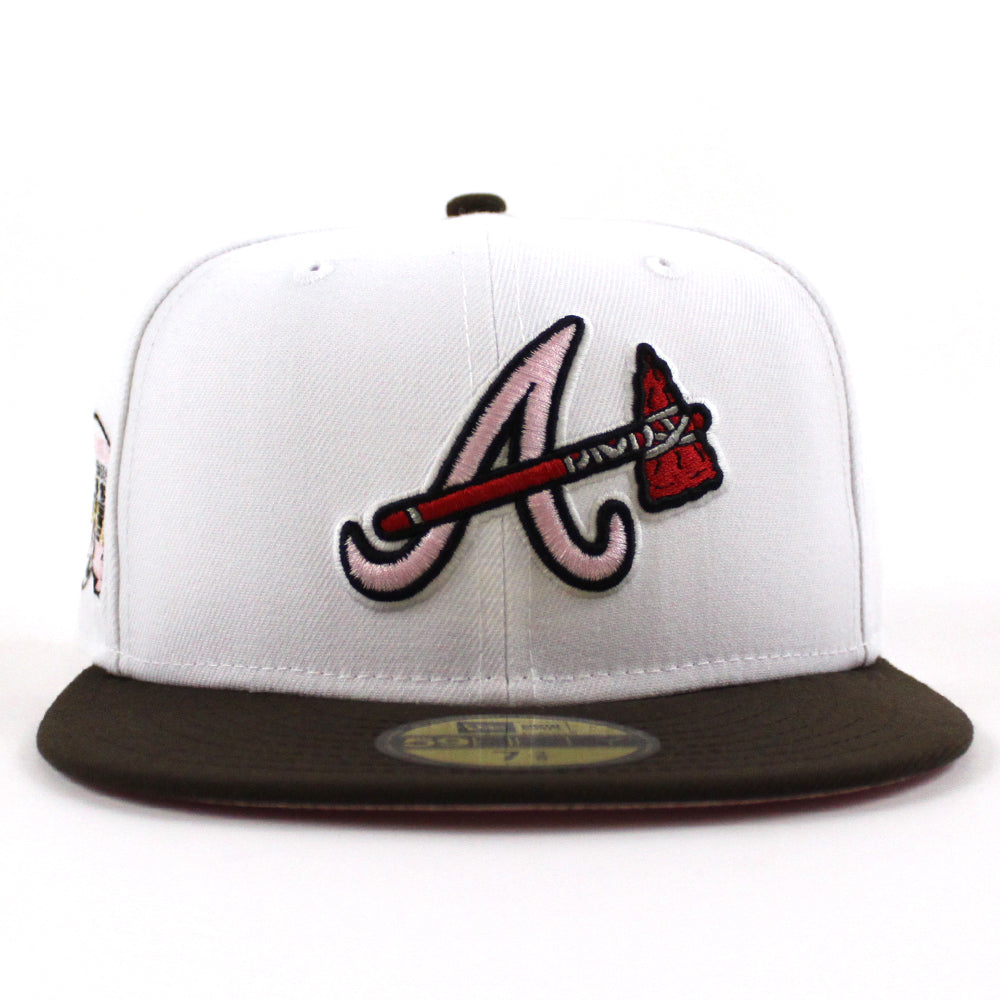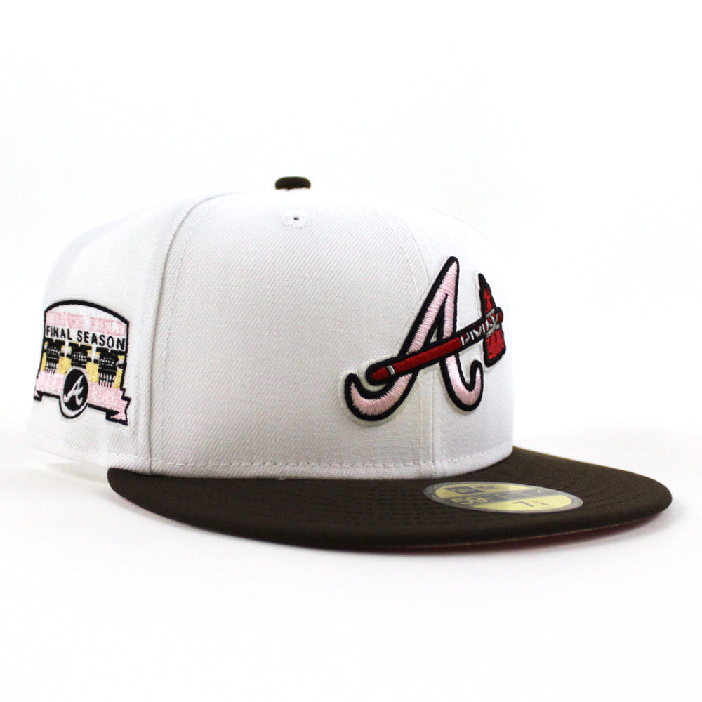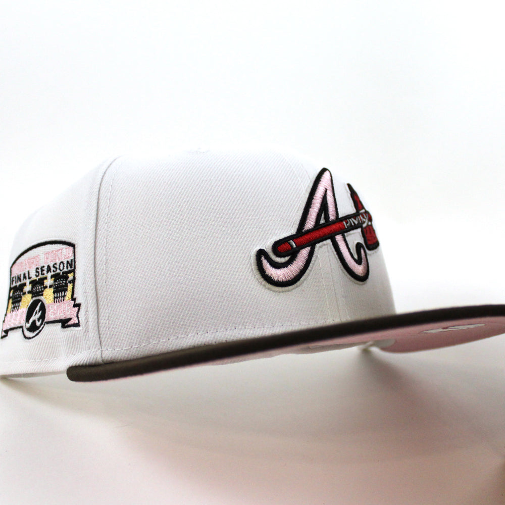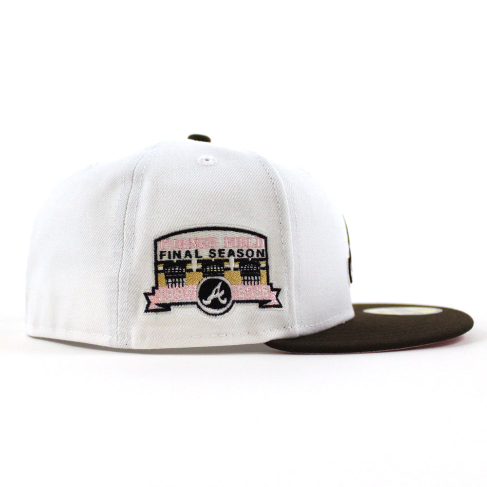 Atlanta BravesTURNER FIELD FINAL SEASON New Era 59Fifty Fitted Hat in White with Brown Visor and a Pink Under Brim.