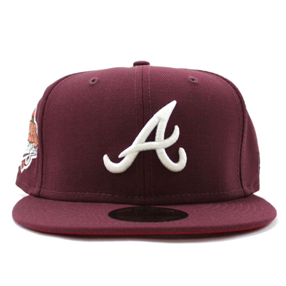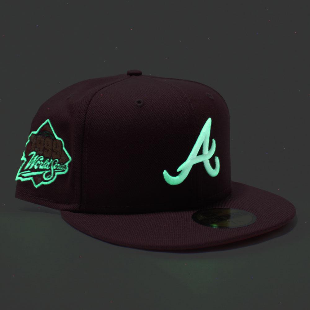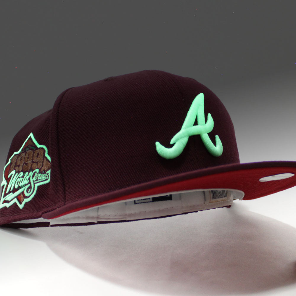 Atlanta Braves 1999 World Series New Era 59Fifty Fitted Hat V2 (Glow in the Dark Maroon Red Under Brim)