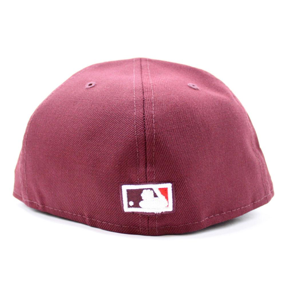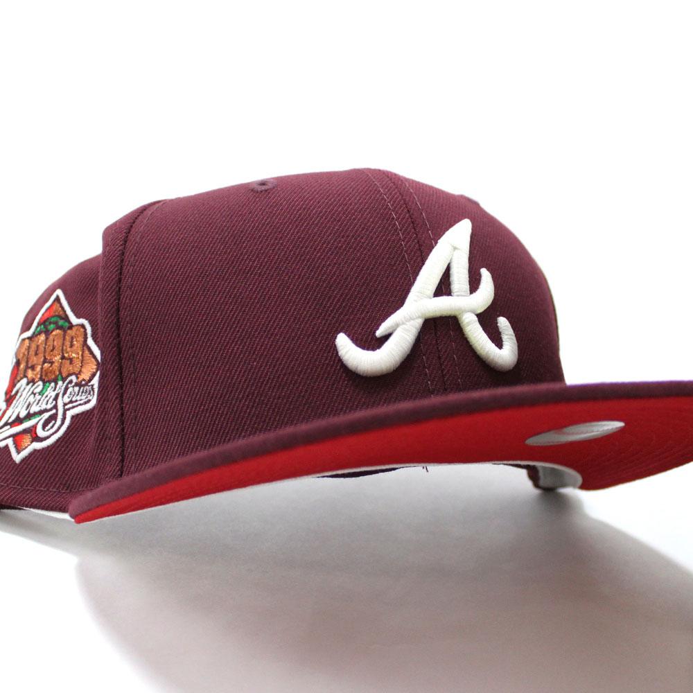 Atlanta Braves 1999 World Series New Era 59Fifty Fitted Hat in Maroon with a Red Under Brim.