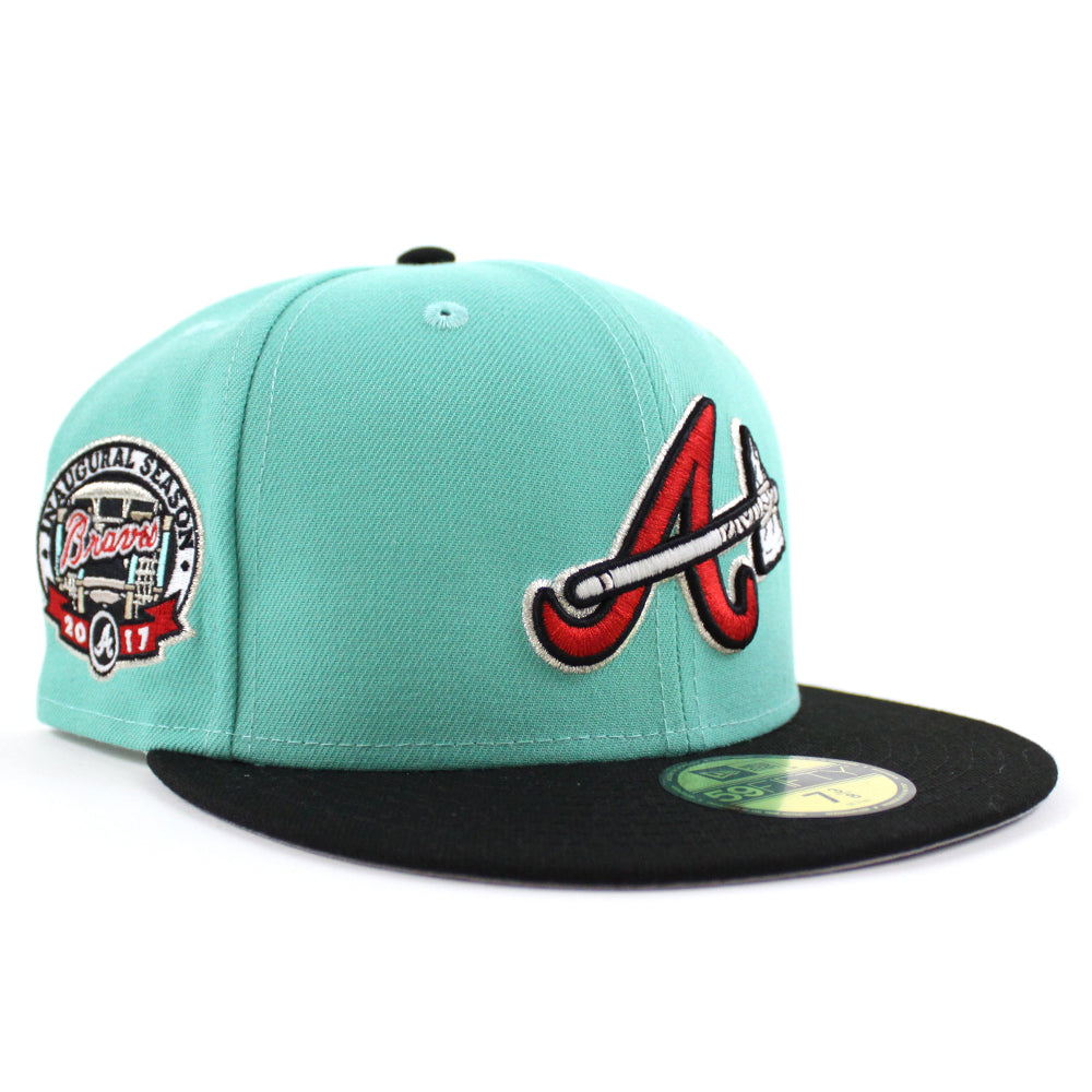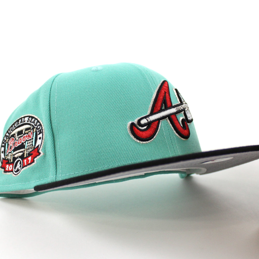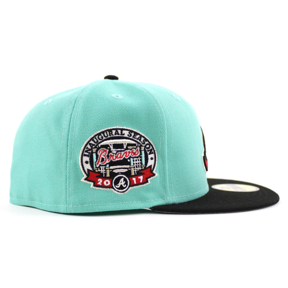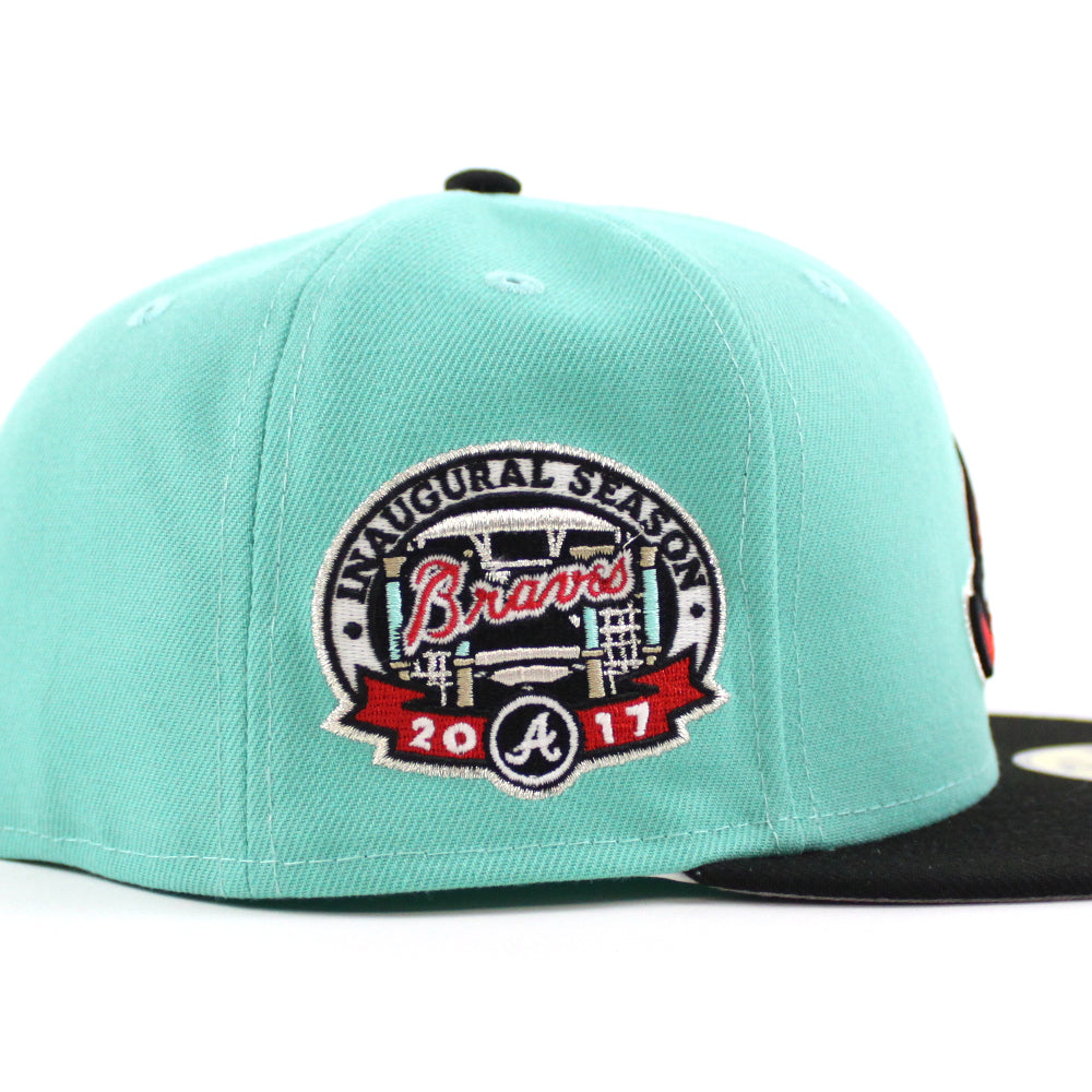 Atlanta Braves 2017 Inaugural Season 59Fifty New Era Fitted Hat in Mint, Black and Gray Under Brim.