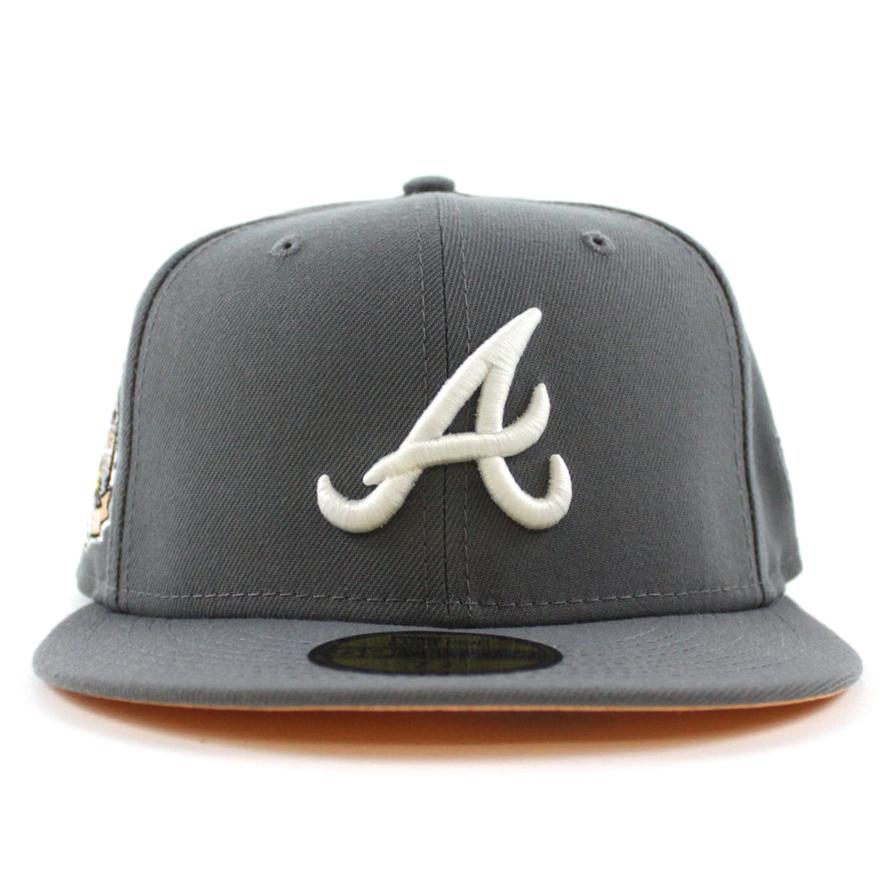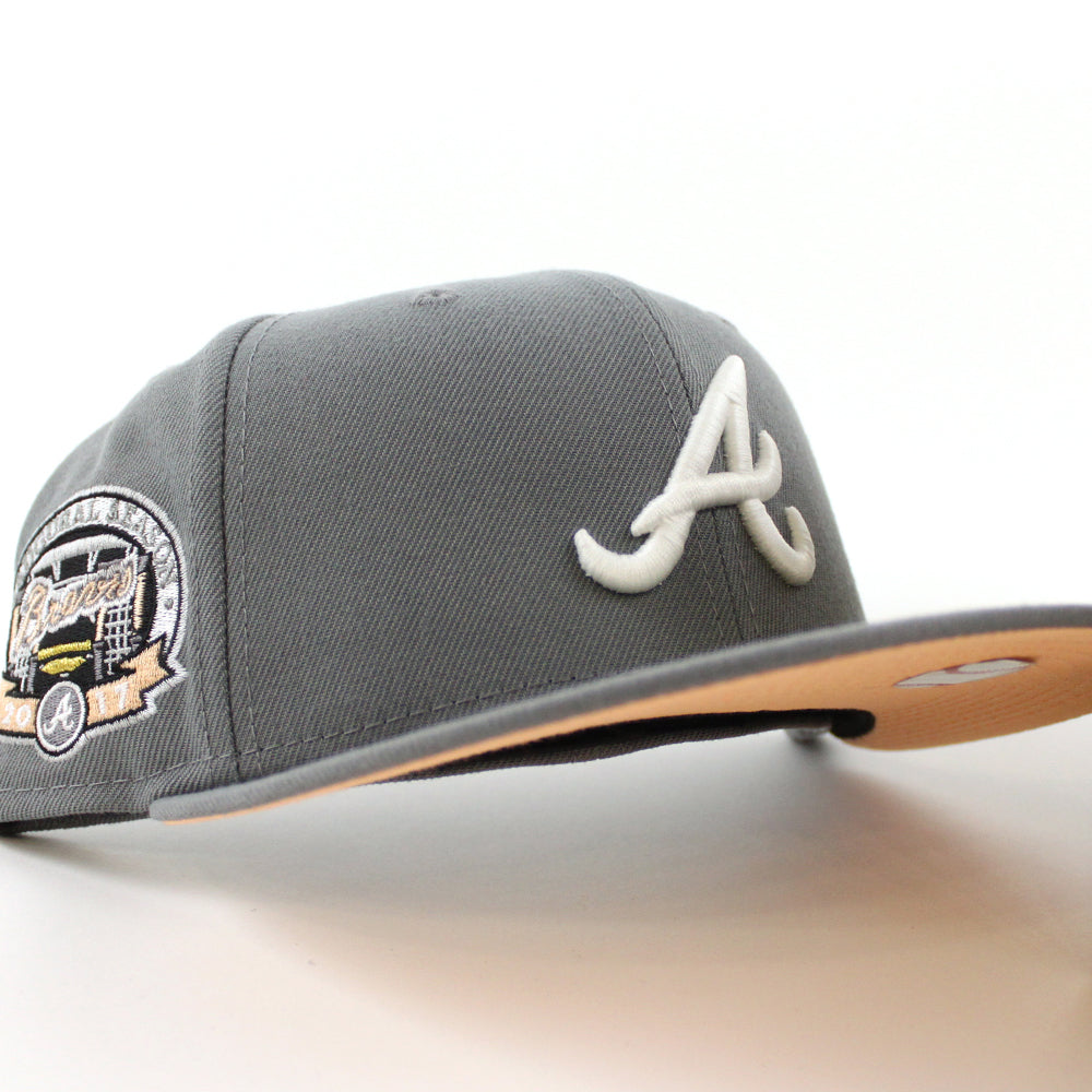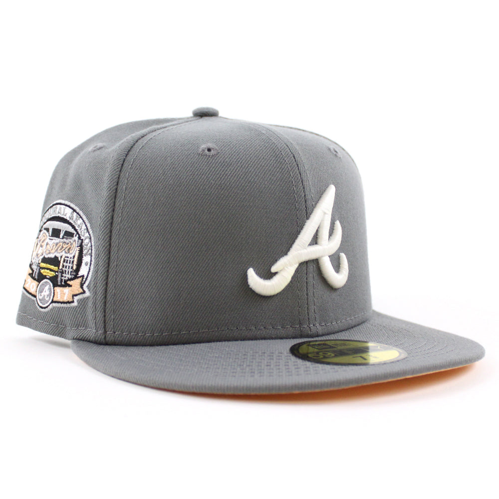 Atlanta Braves 2017 INAUGURAL SEASON New Era 59Fifty Fitted Hat in Storm Grey with a Peach Under Brim.