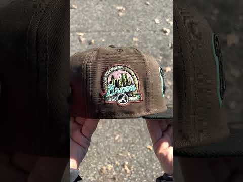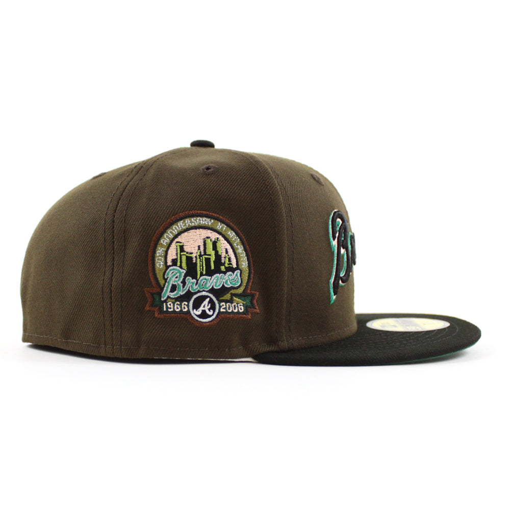 Atlanta Braves 40th Anniversary New Era 59Fifty Fitted Hat in Walnut, Black and Emerald Under Brim. 20