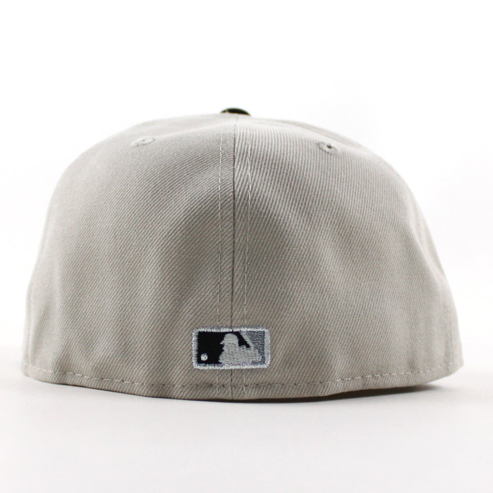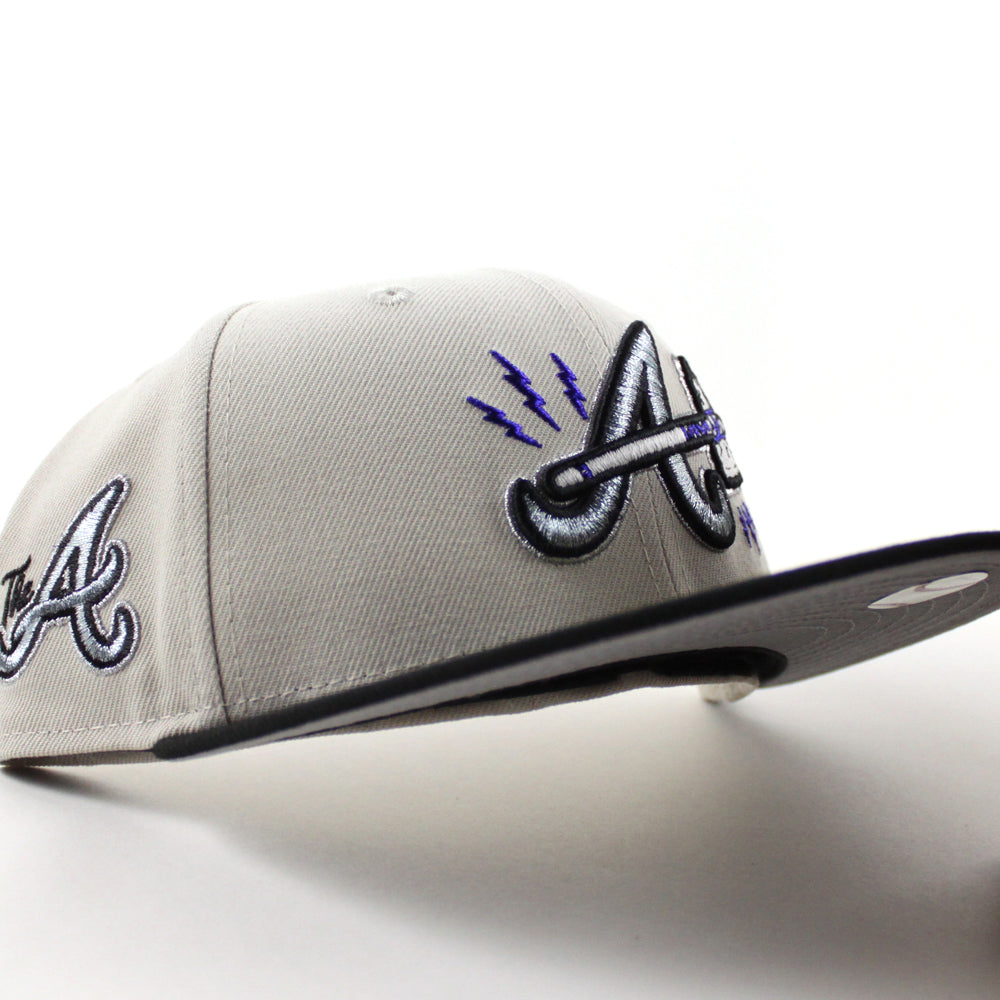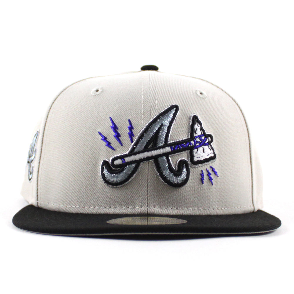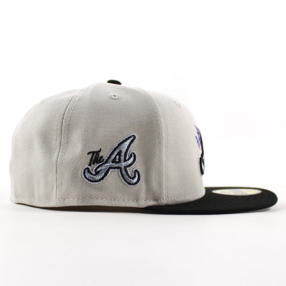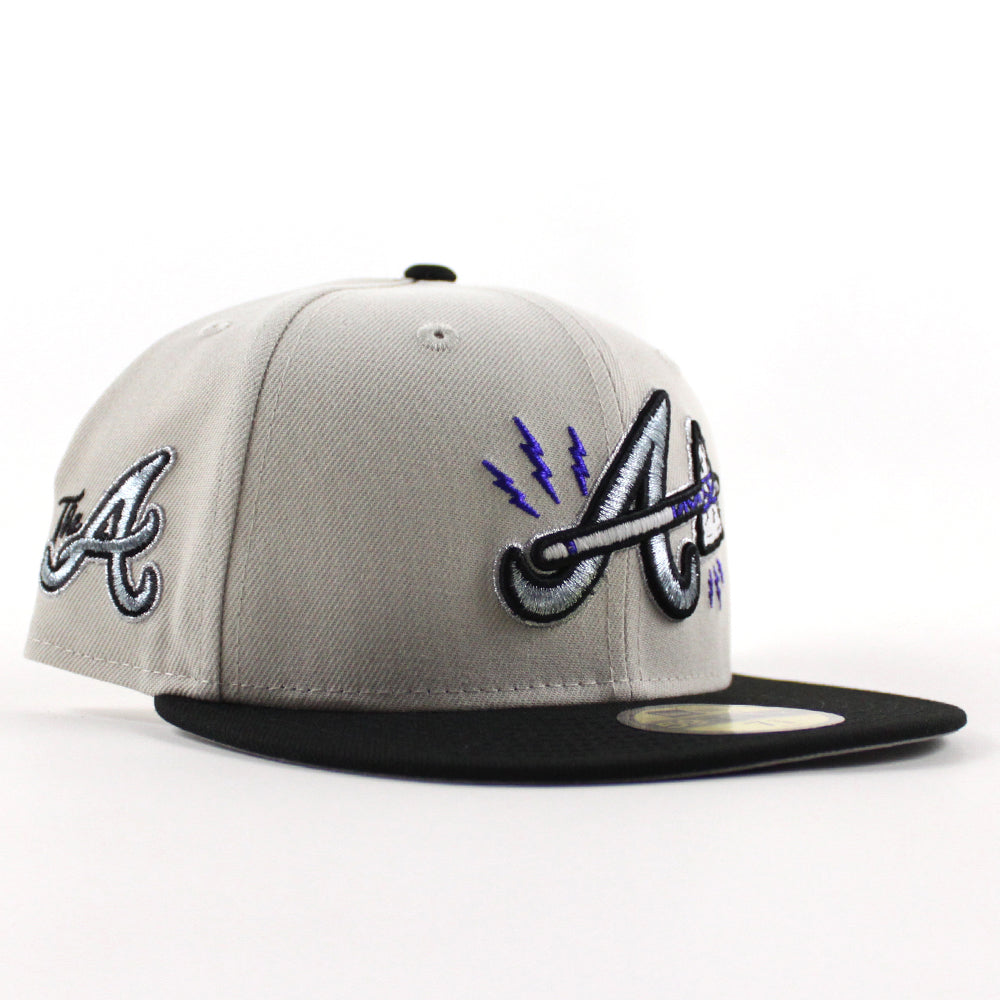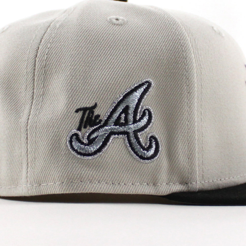 Atlanta Braves The A Patch New Era 59Fifty Fitted Hat in Stone Gray, Black and Gray Under Brim.