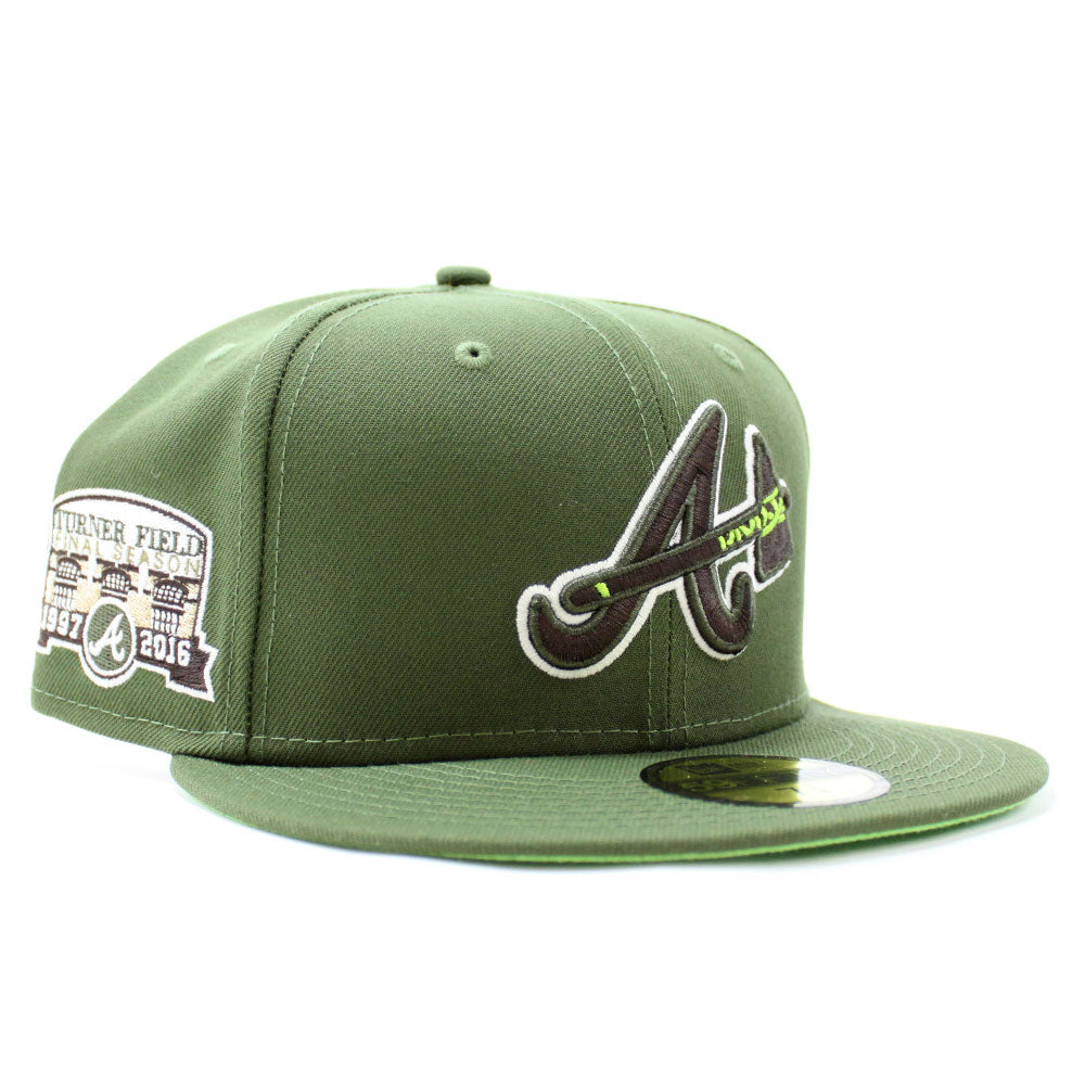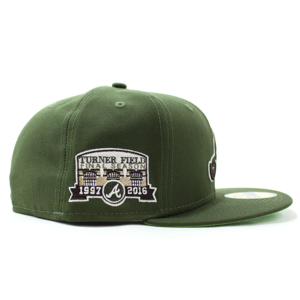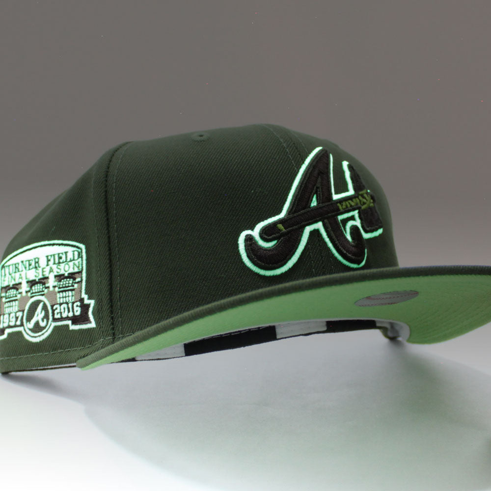 Atlanta Braves Turner Field Final Season New Era 59Fifty Fitted Hat (Glow in the Dark Nike SB Jedi Colorway Hunter Green Lime Green Under Brim)