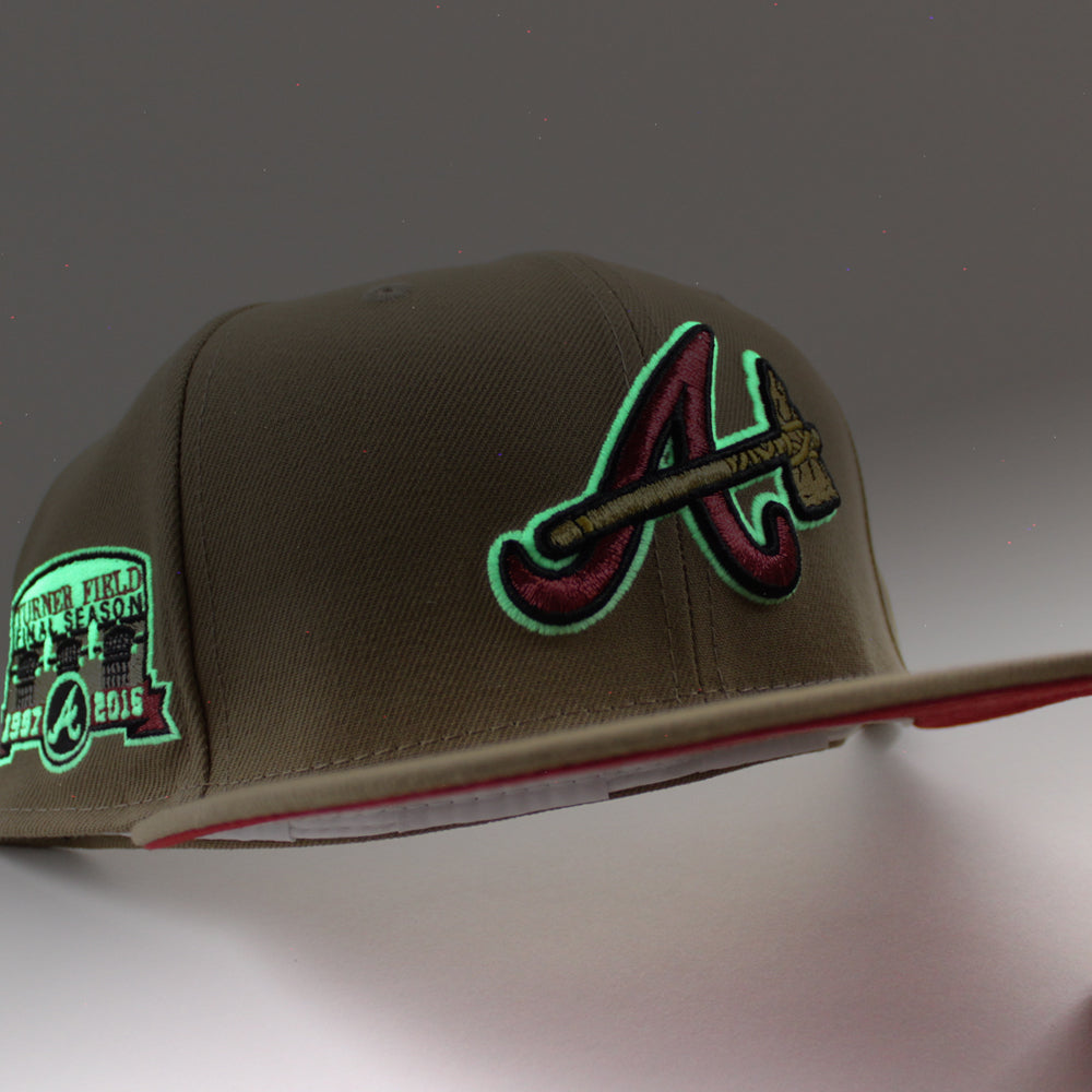 Atlanta Braves Turner Field Final Season New Era 59Fifty Fitted Hat (GITD Khaki Red Under Brim)