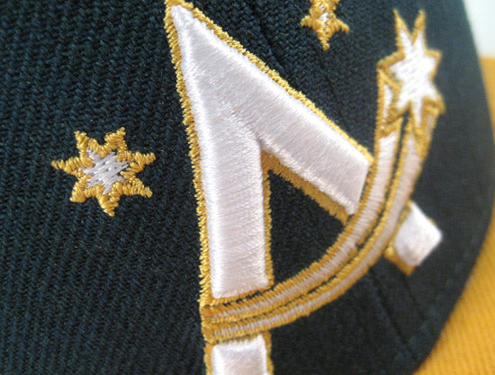 Featuring similar color blocking and logos this Australian World Baseball Classic New Era Fitted Hat comes in Dark Green and has a yellow visor and button. The logo itself shoes the capital "A" with 5 stars surrounding it. Its finished off with a teams flag on the side and a gray underbrim.