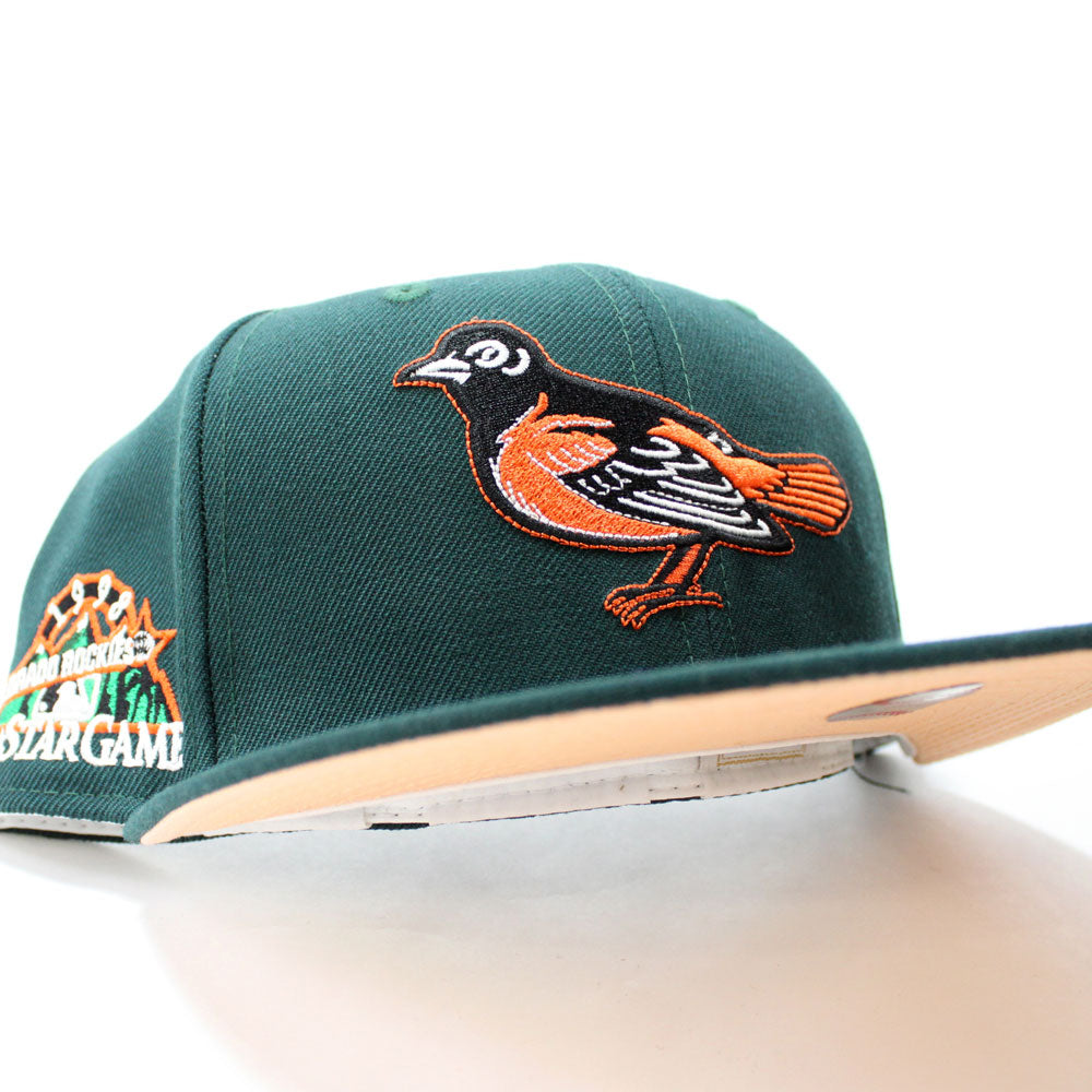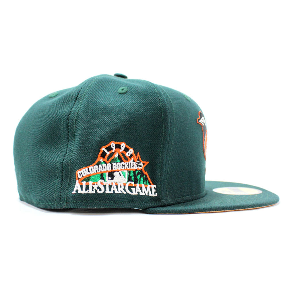 Baltimore Orioles 1998 All-Star Game 59Fifty New Era Fitted Hat in Dark Green & Peach Under Brim.