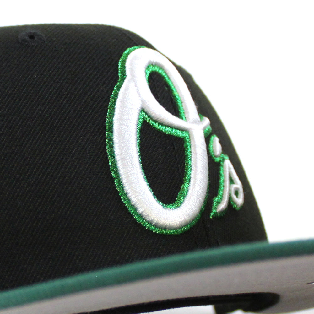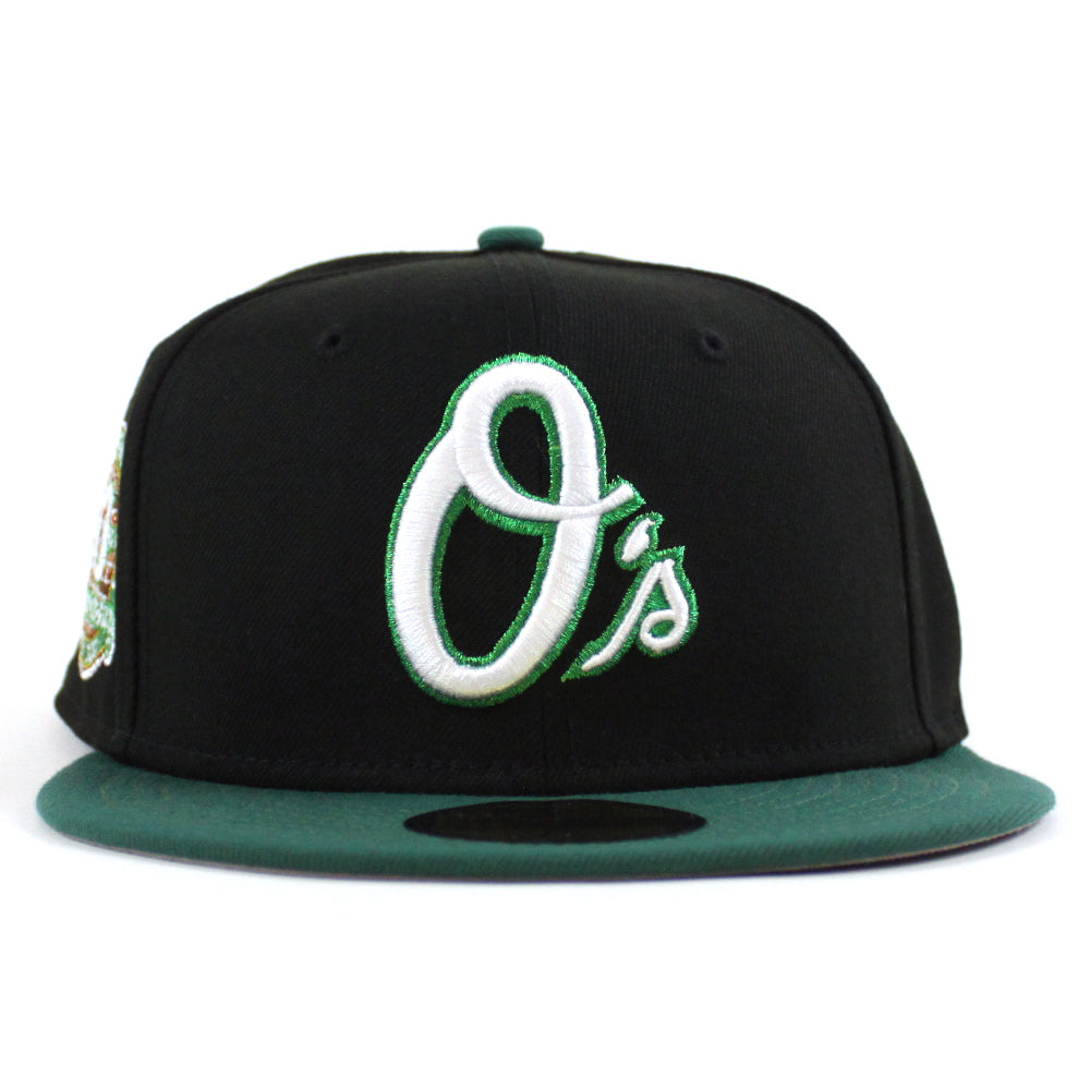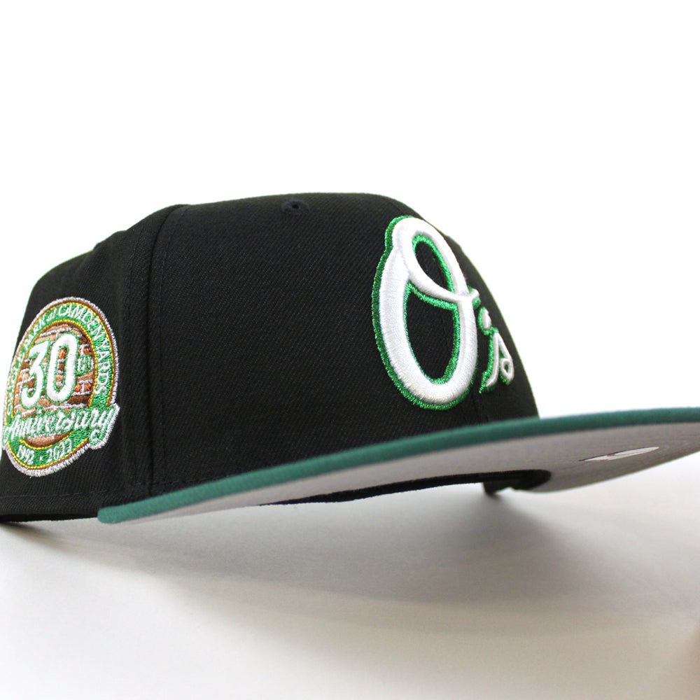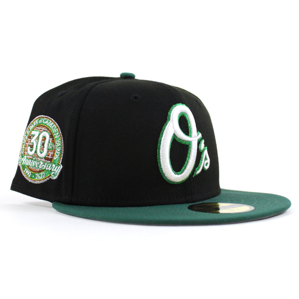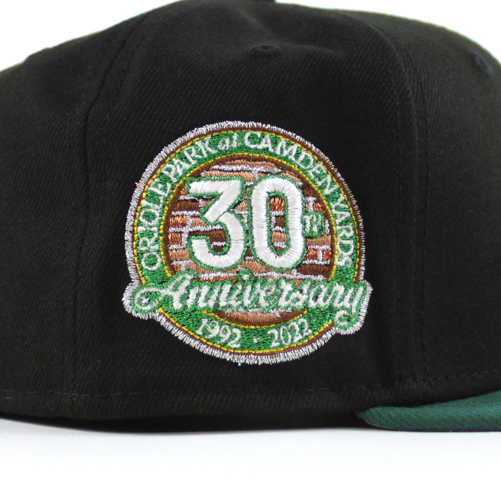 Baltimore Orioles 30th Anniversary 59Fifty New Era Fitted Cap in Black, Emerald Green and Gray Under Brim.