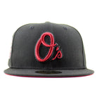 Baltimore Orioles 30th Anniversary 59Fifty New Era Fitted Cap in Black and Scarlet Red Under Brim.