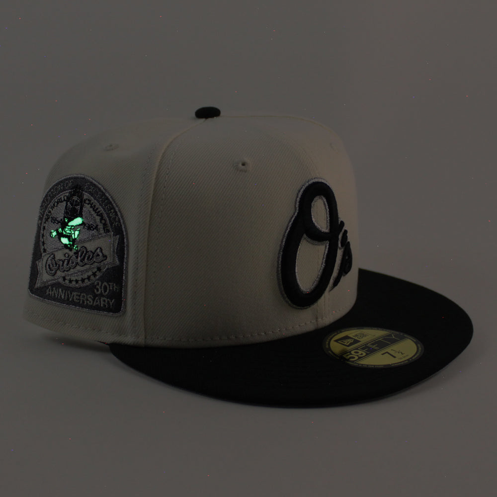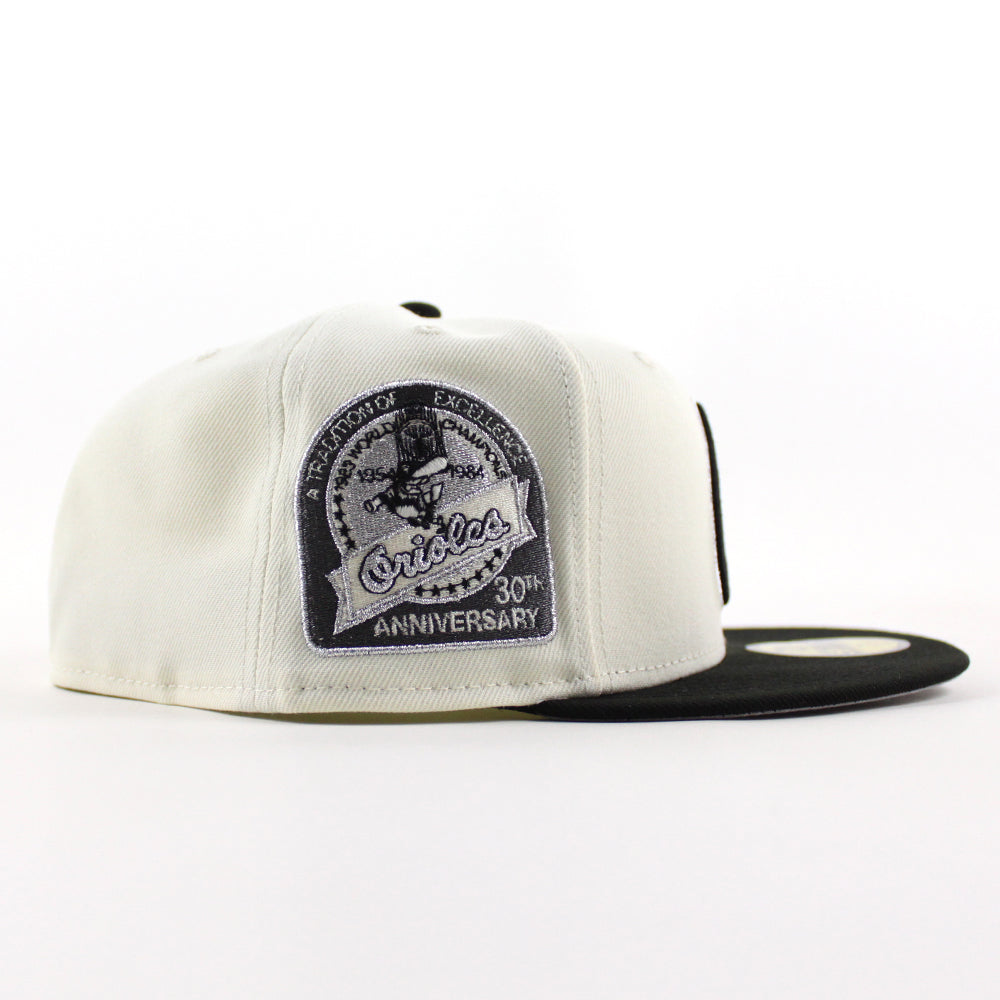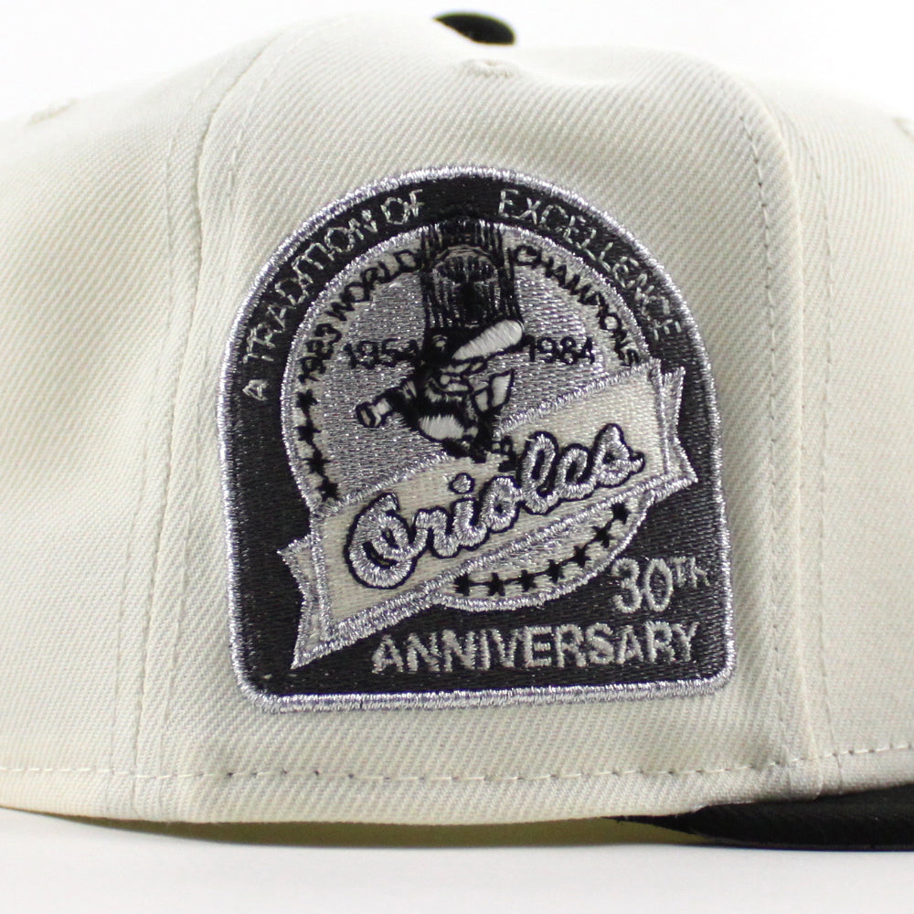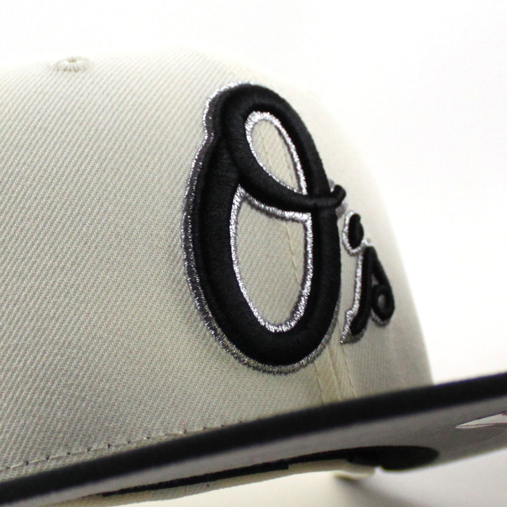 Baltimore Orioles 30th Anniversary 59Fifty New Era Fitted Cap in Chrome White, Black and Metallic Gray Under Brim.