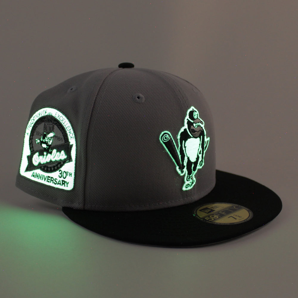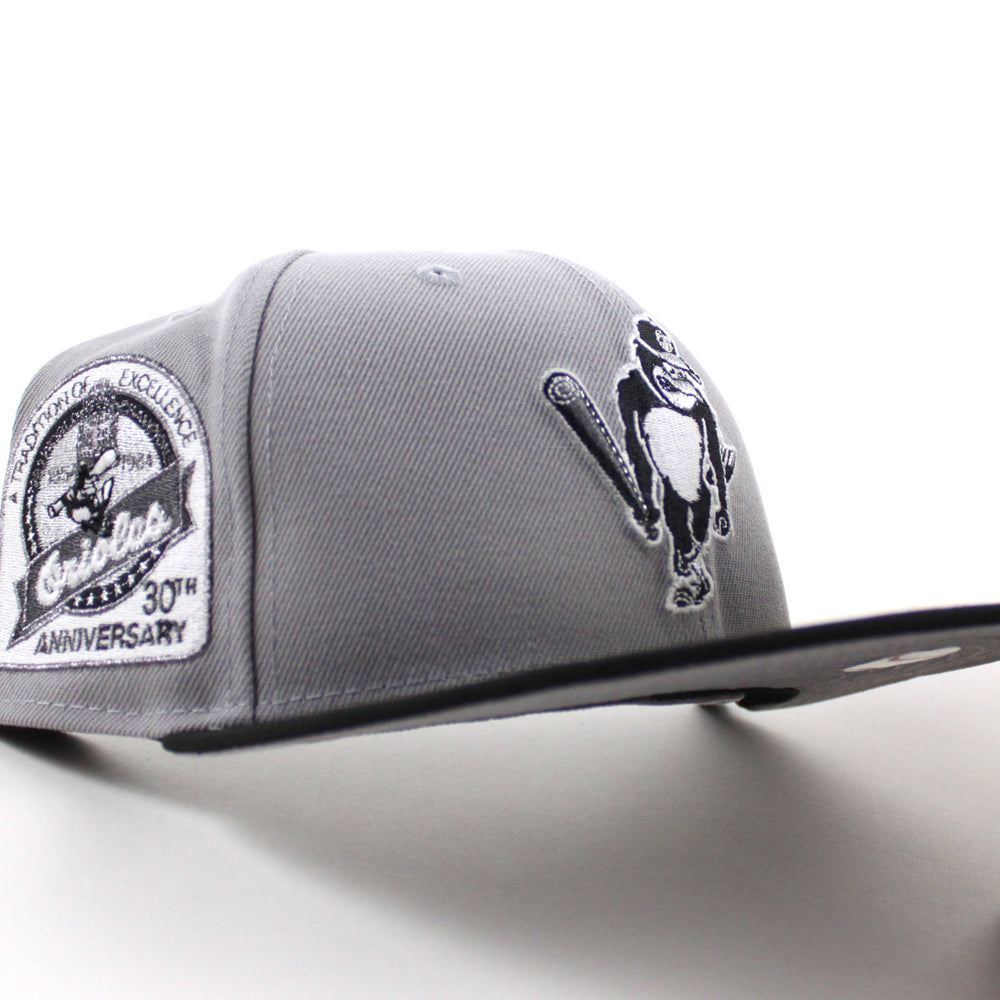 Baltimore Orioles 30th Anniversary 59Fifty New Era Fitted Cap in Gray, Black and Gray Under Brim.