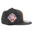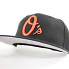 Baltimore Orioles 50TH Anniversary 1970 World Champ New Era 59Fifty Fitted Hat is Black and Orange with Gray Under Brim.