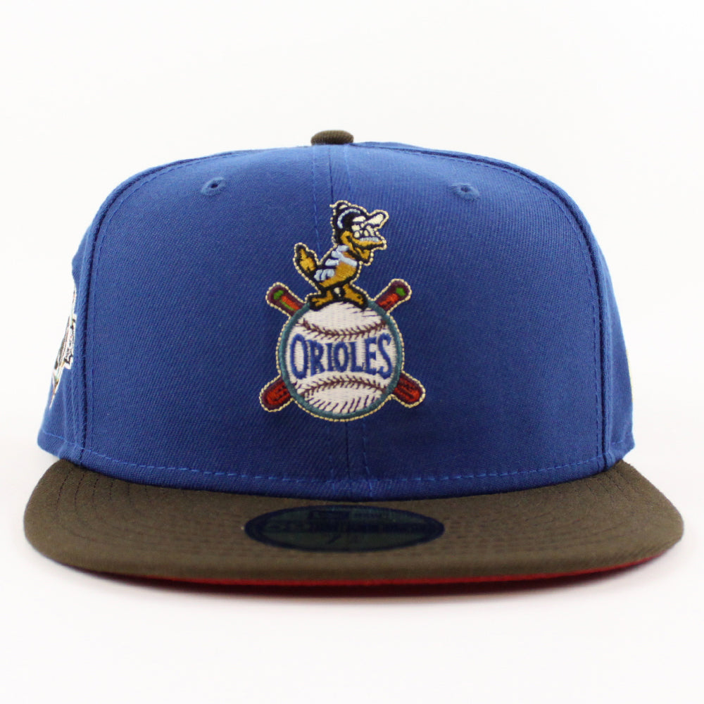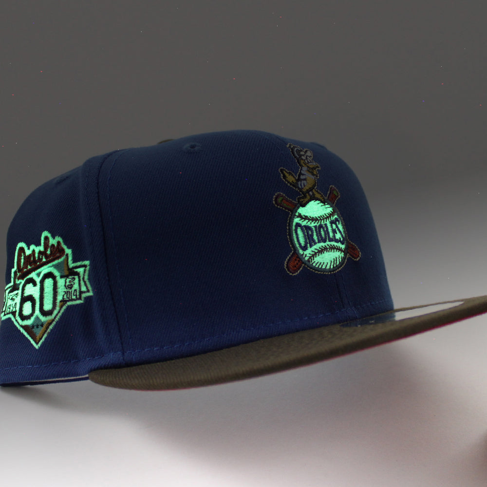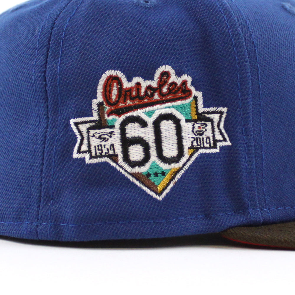 Baltimore Orioles 60th Anniversary 59Fifty New Era Fitted Hat (Glow in the Dark SONGBIRD BLUE WALNUT PINOT RED Under Brim)