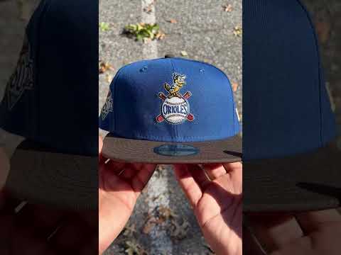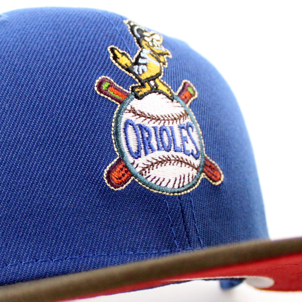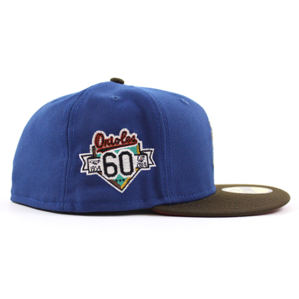 Baltimore Orioles 60th Anniversary 59Fifty New Era Fitted Hat in SongBird Blue, Walnut and Pinot Red Under Brim.