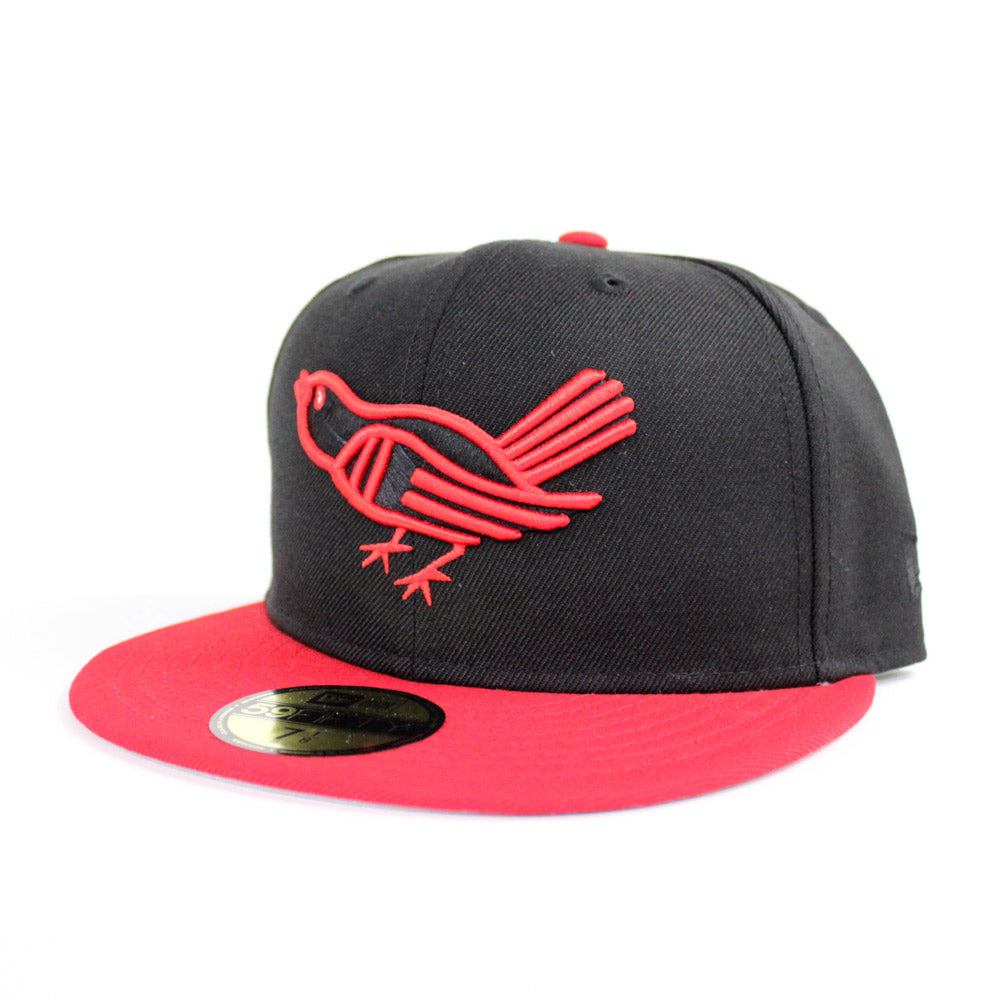 The Baltimore Orioles New Era 59Fifty Fitted hat have a strong fan following on eCapCity.com. We decided to make a custom Baltimore Orioles hat using their popular old school Orioles logo. The whole Orioles Fitteds is Black and Red with Gray Under Brim.