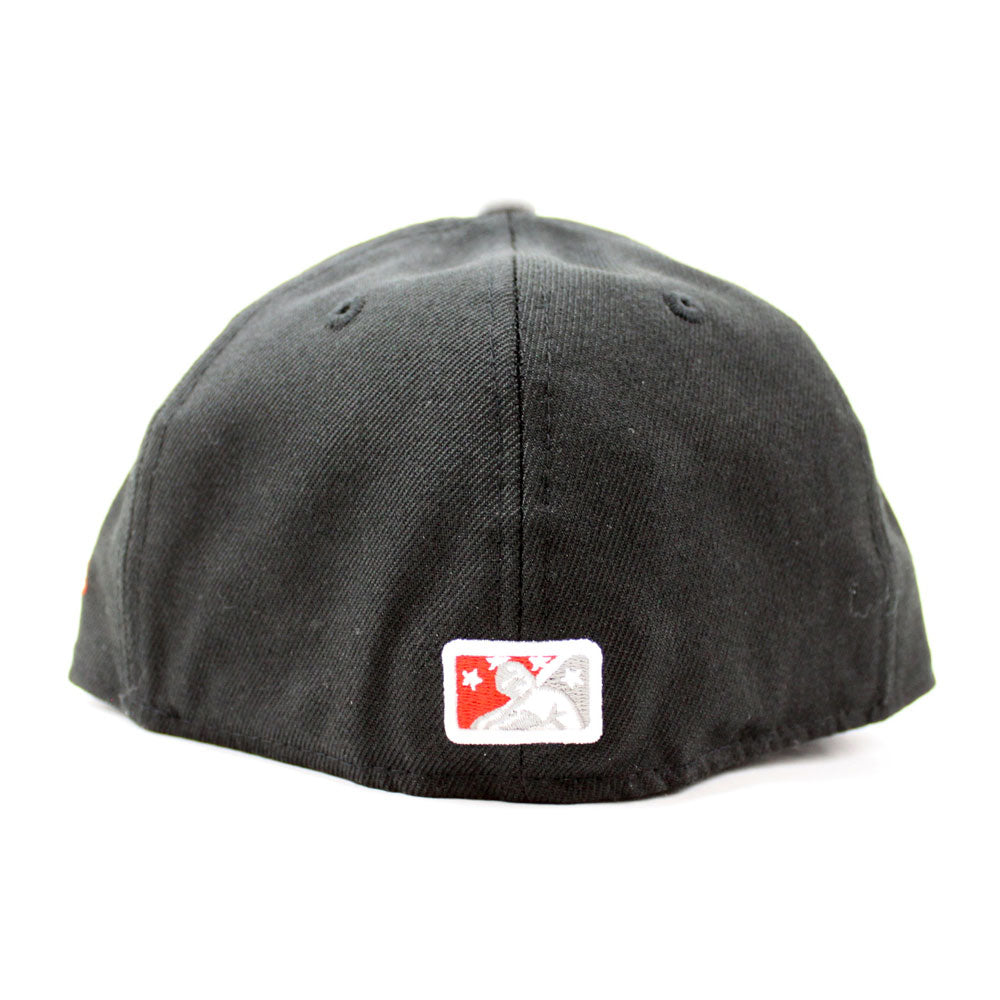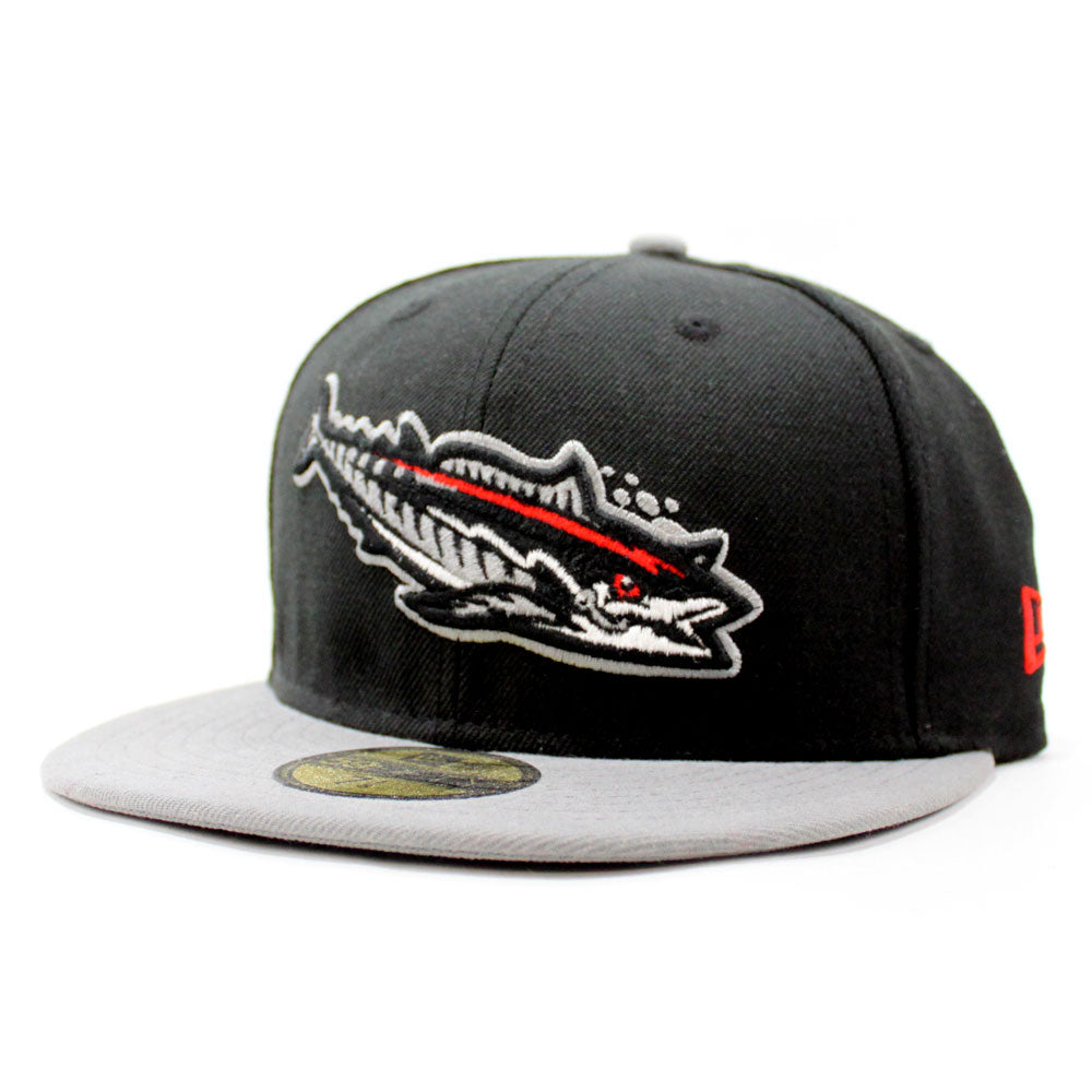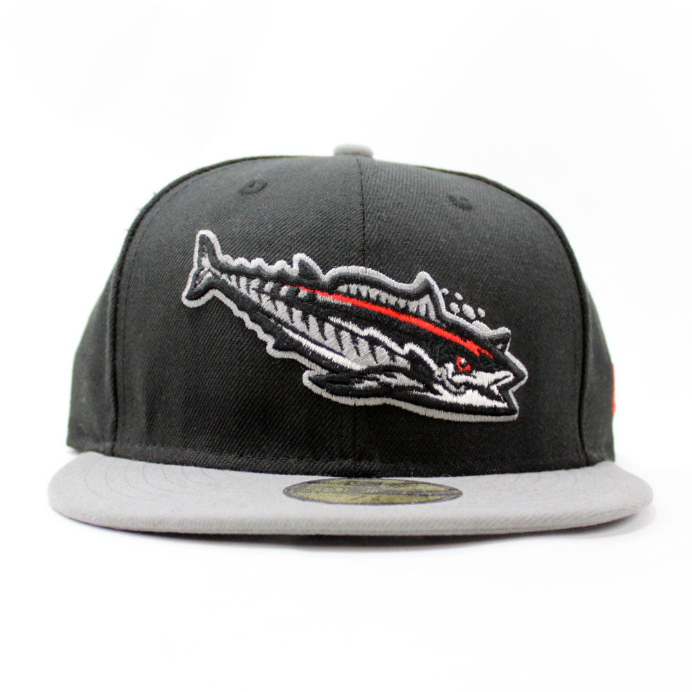 Pensacola Blue Wahoos New Era 59Fifty Fitted Hat in Black and Gray Underbrim with Red accents