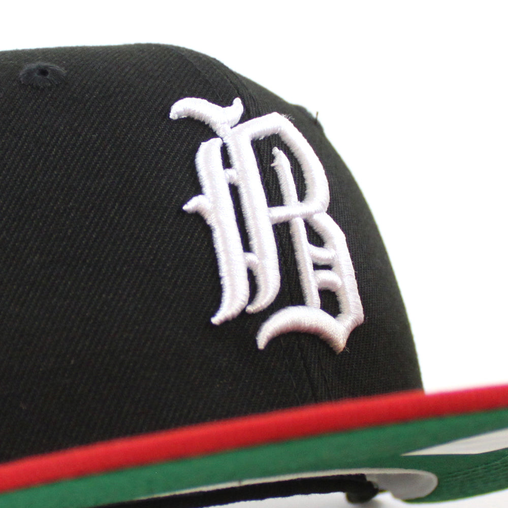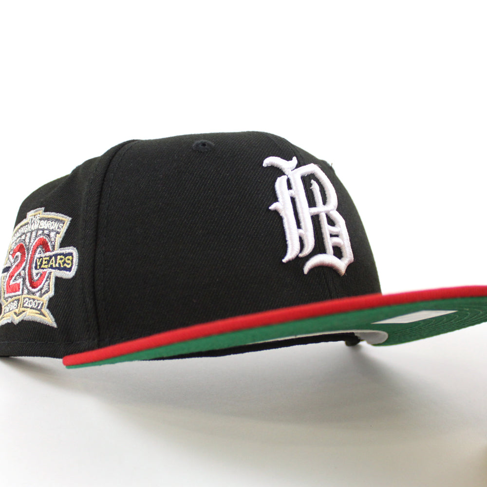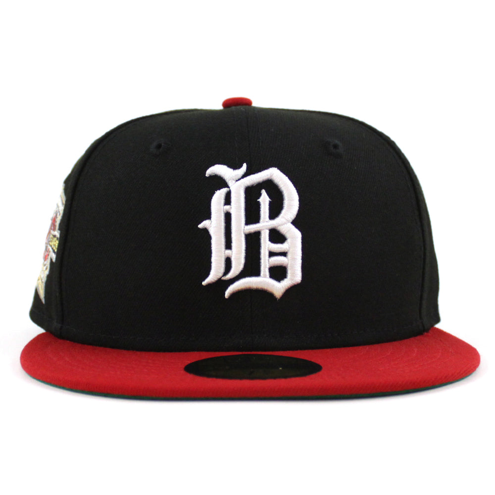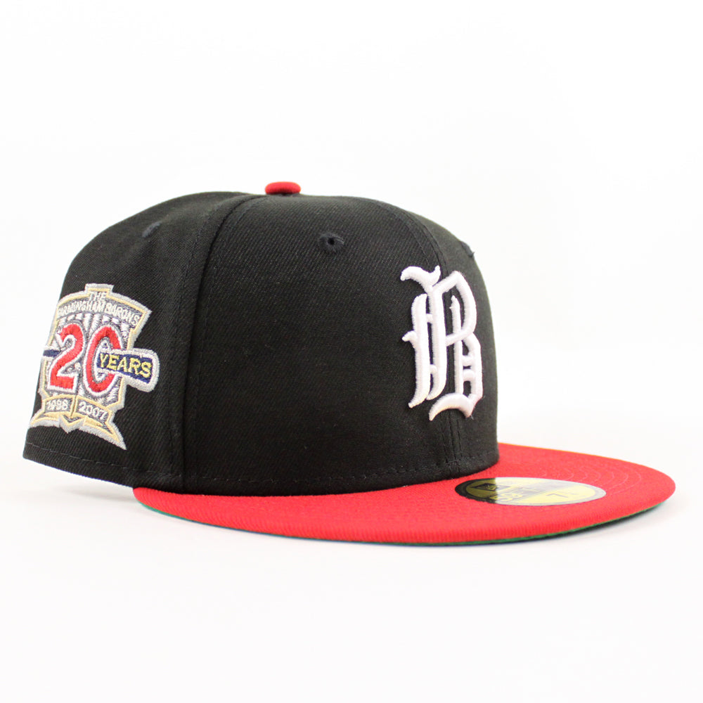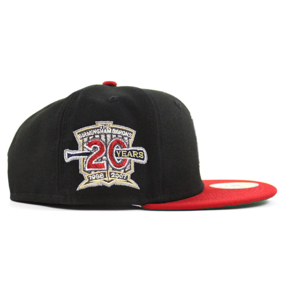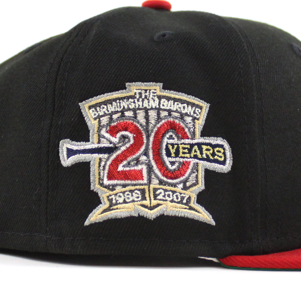 Birmingham Barons 20 Years Patch New Era 59Fifty Fitted hat in Black Red and Green UNDER BRIM.