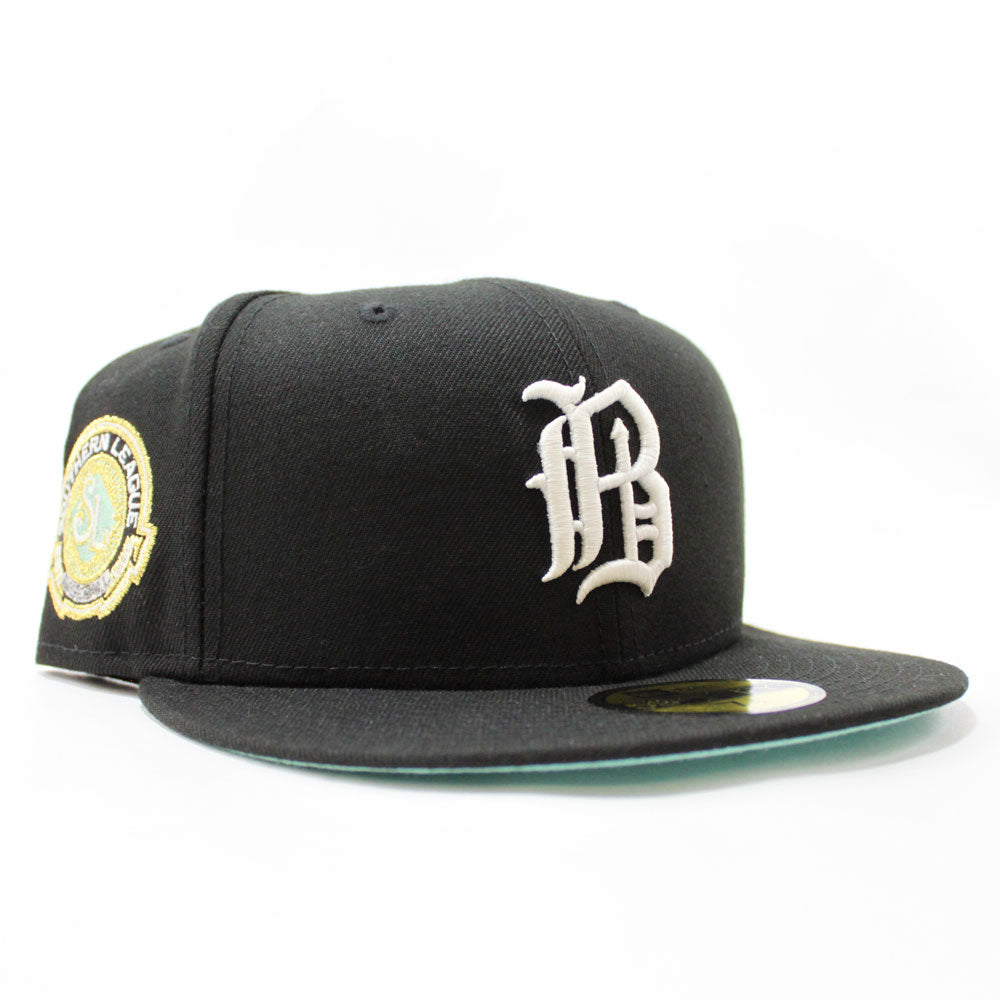 Birmingham Barons Southern League Patch New Era 59Fifty Fitted hats in black with Mint UNDER BRIM.