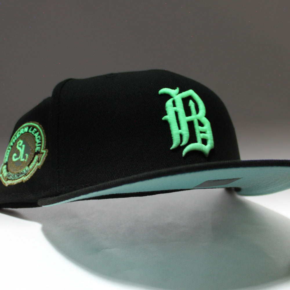 Birmingham Barons Southern League Patch New Era 59Fifty Fitted hats (Glow in the Dark Black Mint UNDER BRIM)