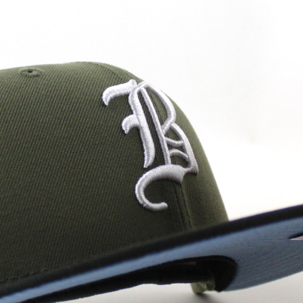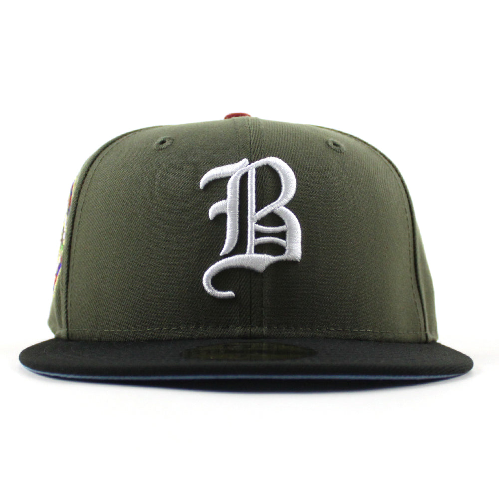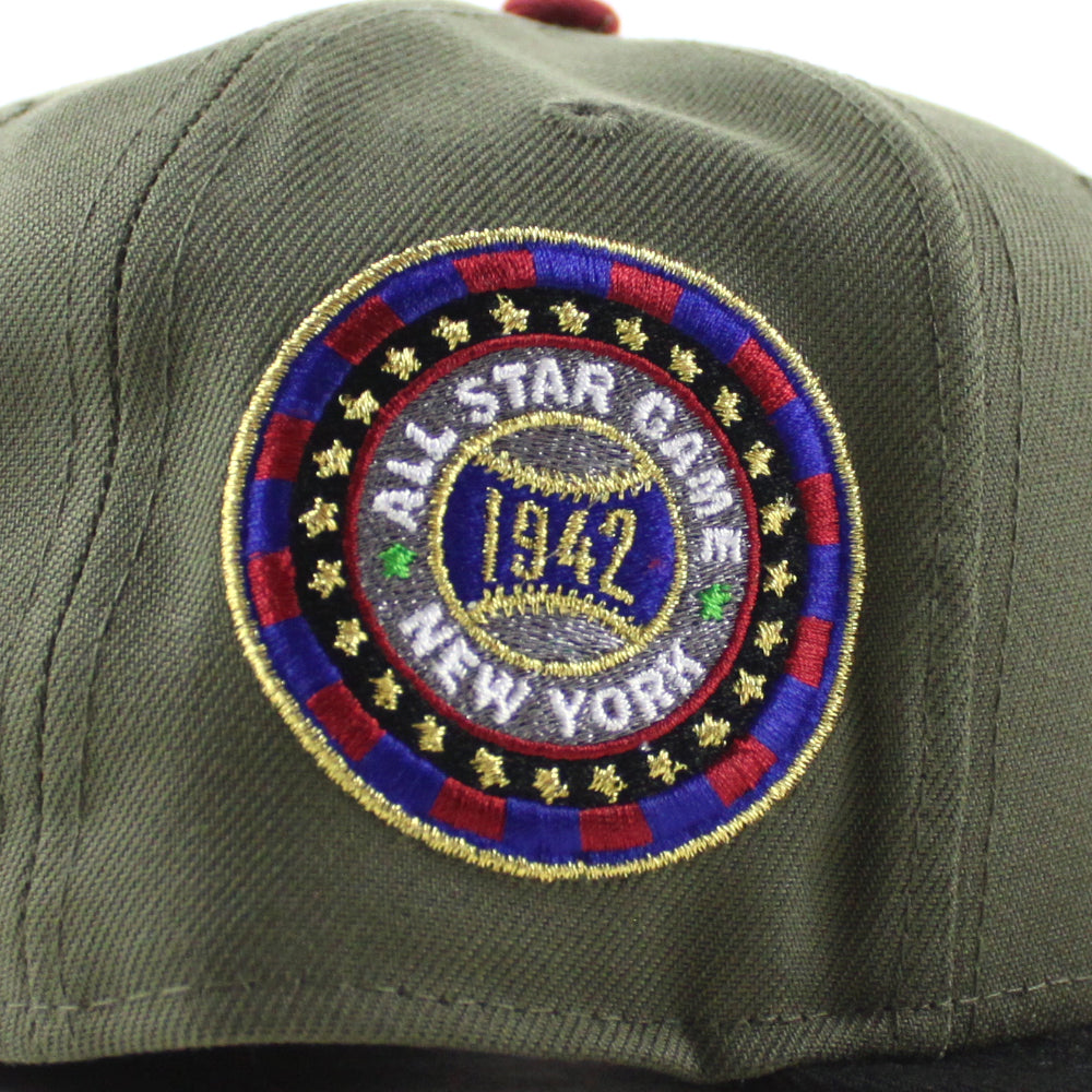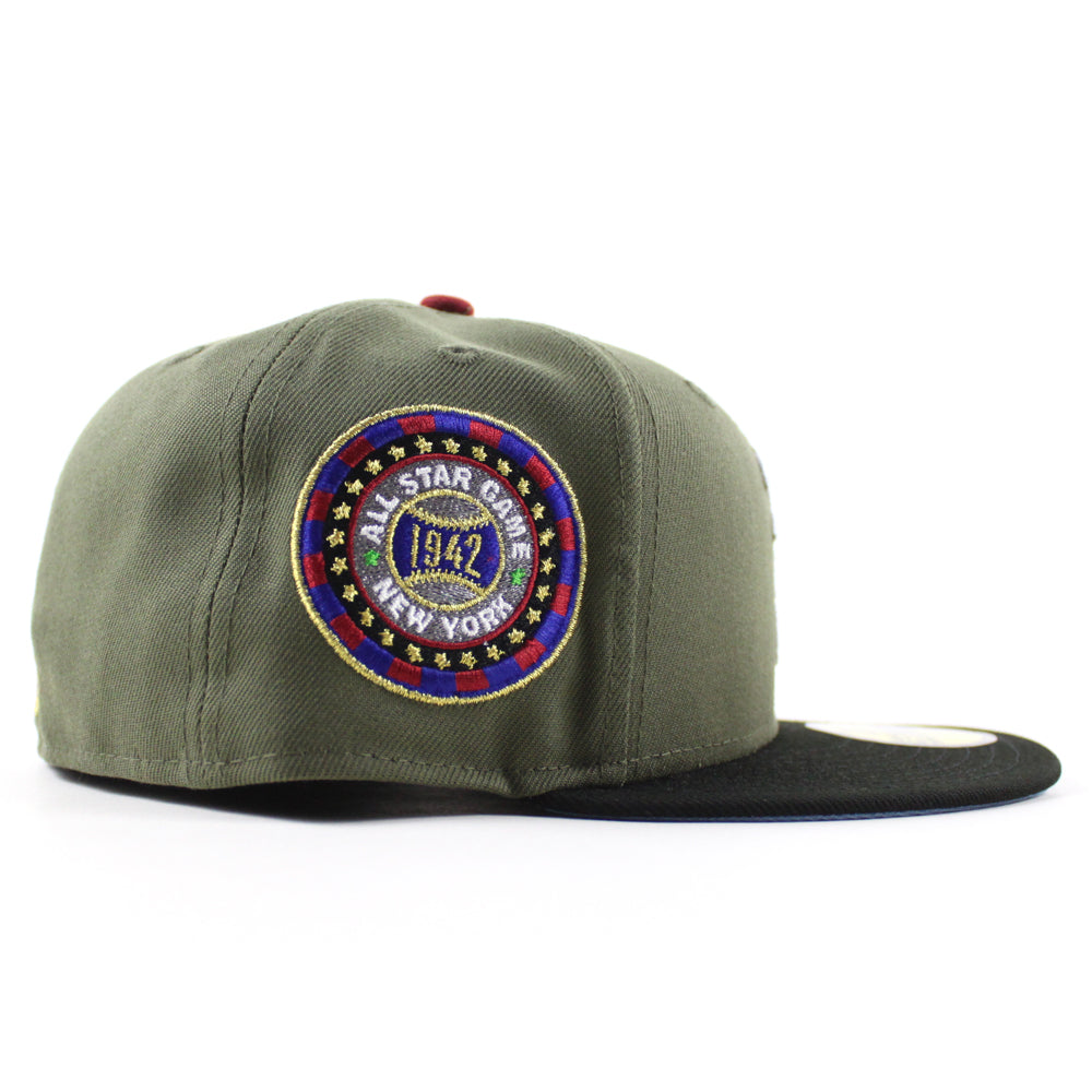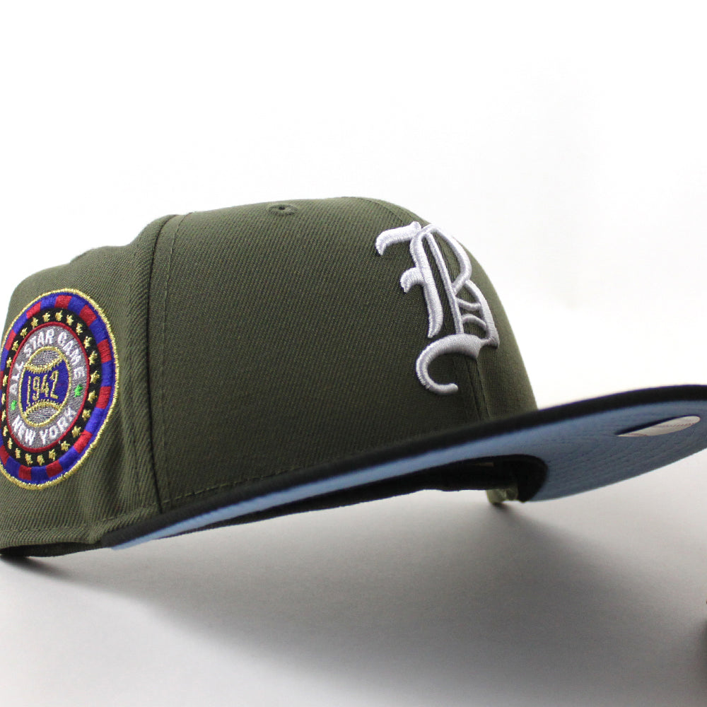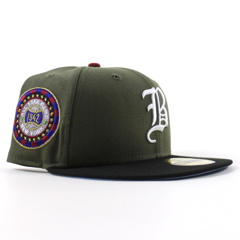 Boston Braves 1942 All Star Game New Era 59Fifty Fitted Cap in Olive Green, Black and Sky Blue Under Brim.