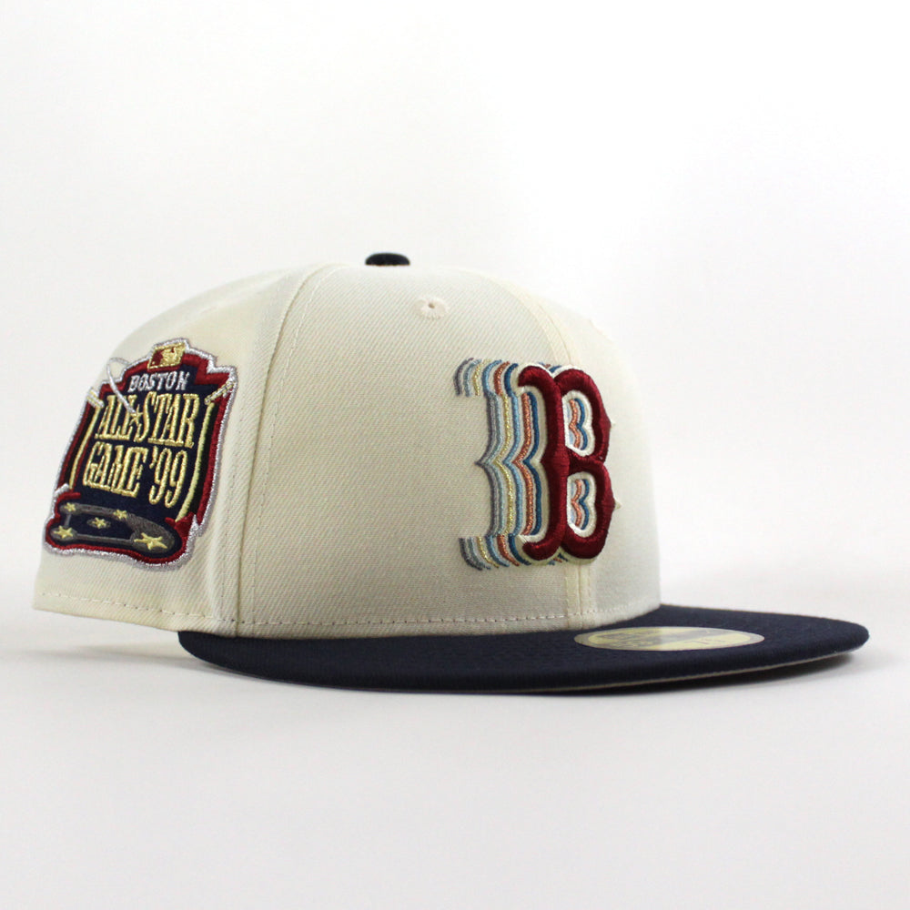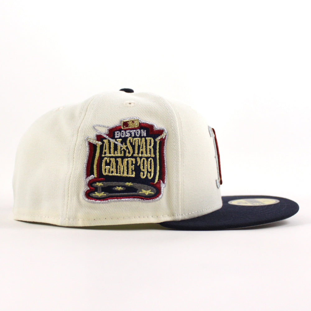 Boston Red Sox 1999 All Star Game New Era 59Fifty Fitted Cap in Chrome White, Navy and Gray Under Brim.