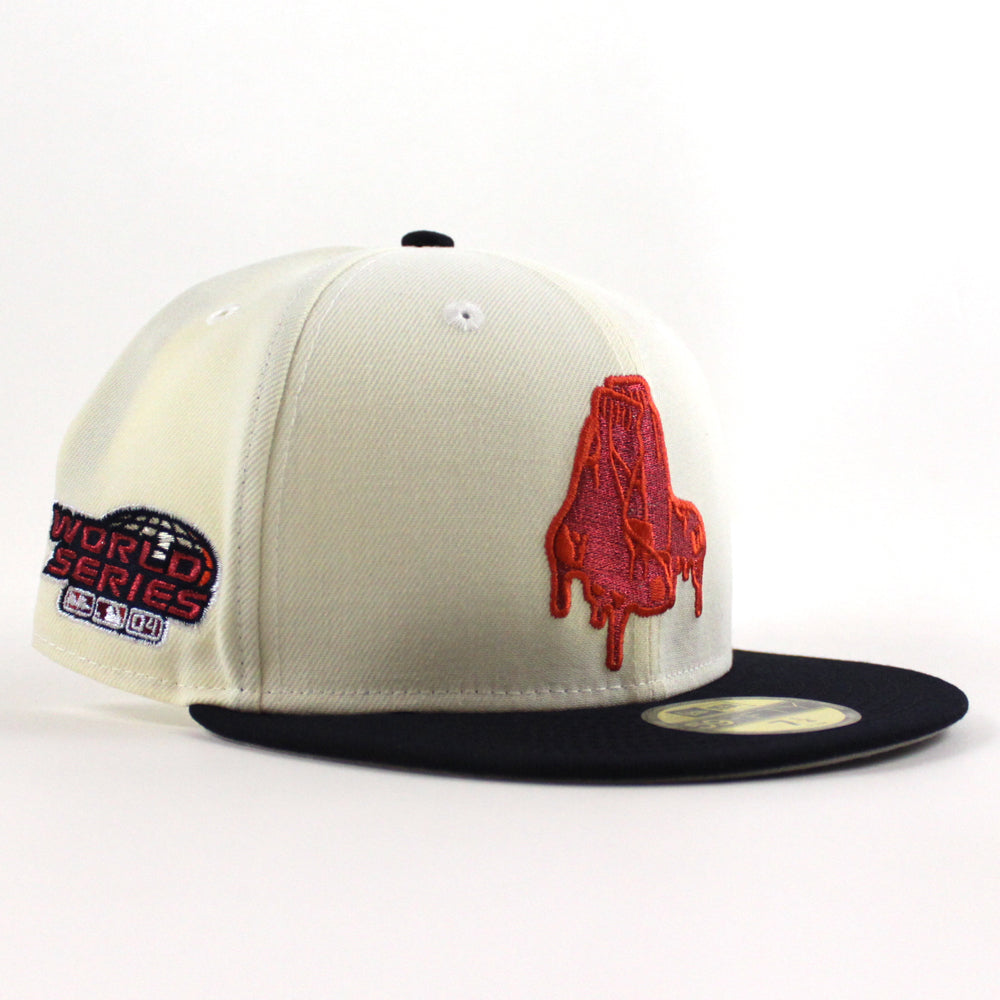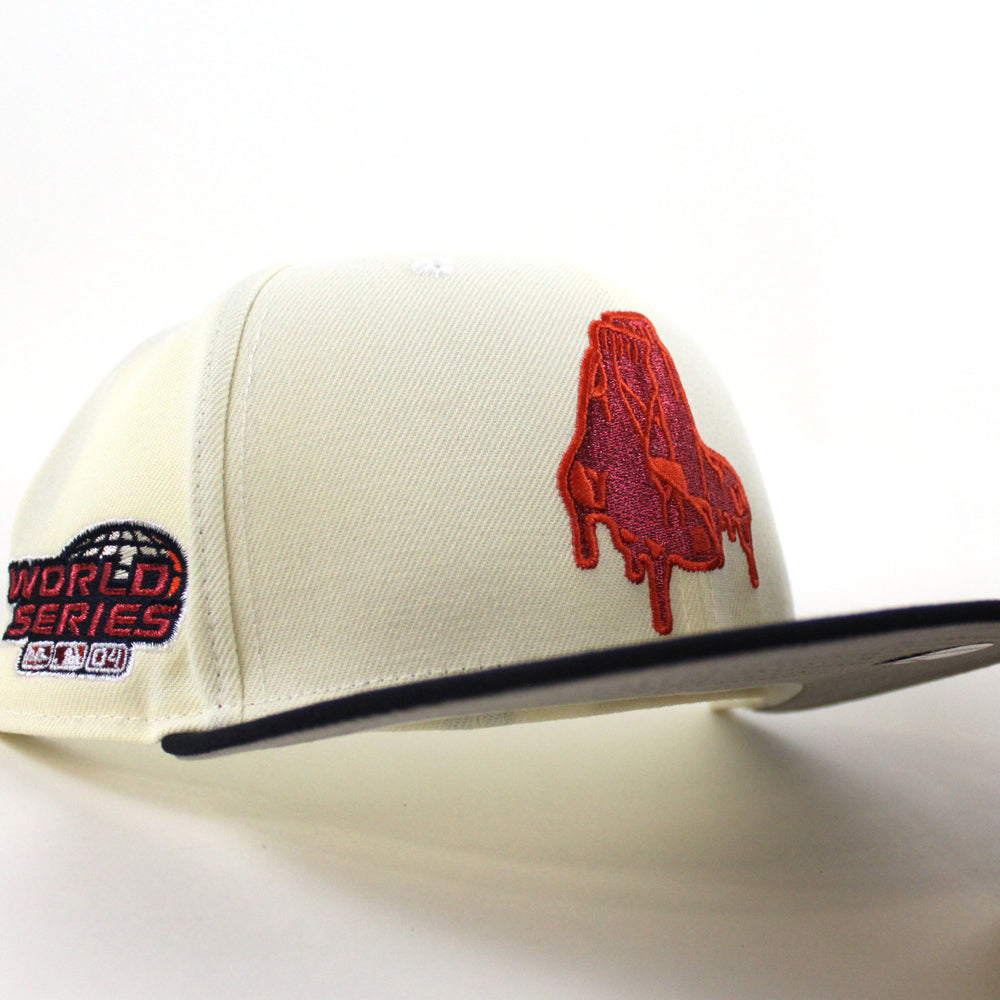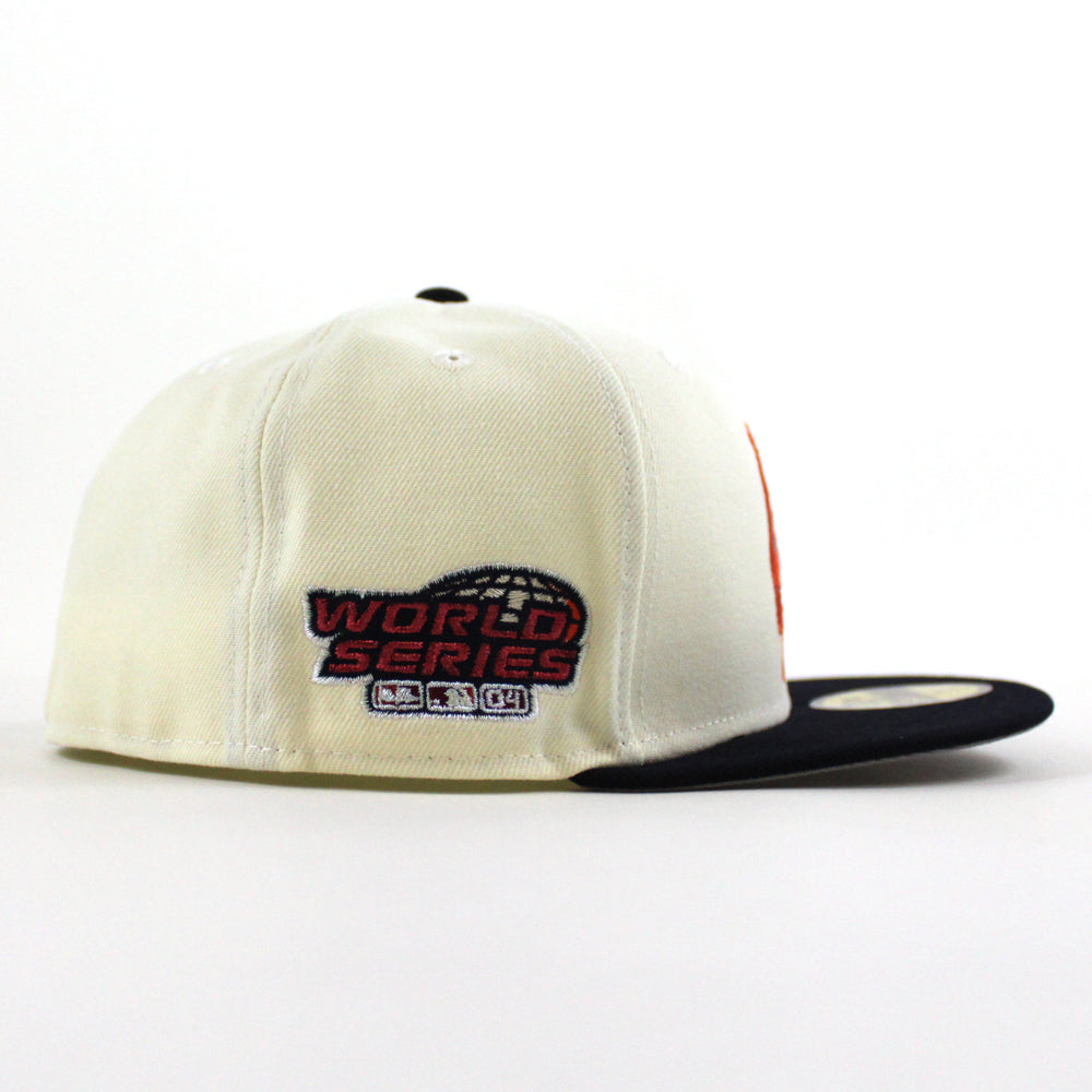 Boston Red Sox 2004 World Series New Era 59Fifty Fitted Cap in Chrome White, Navy and Gray Under Brim.