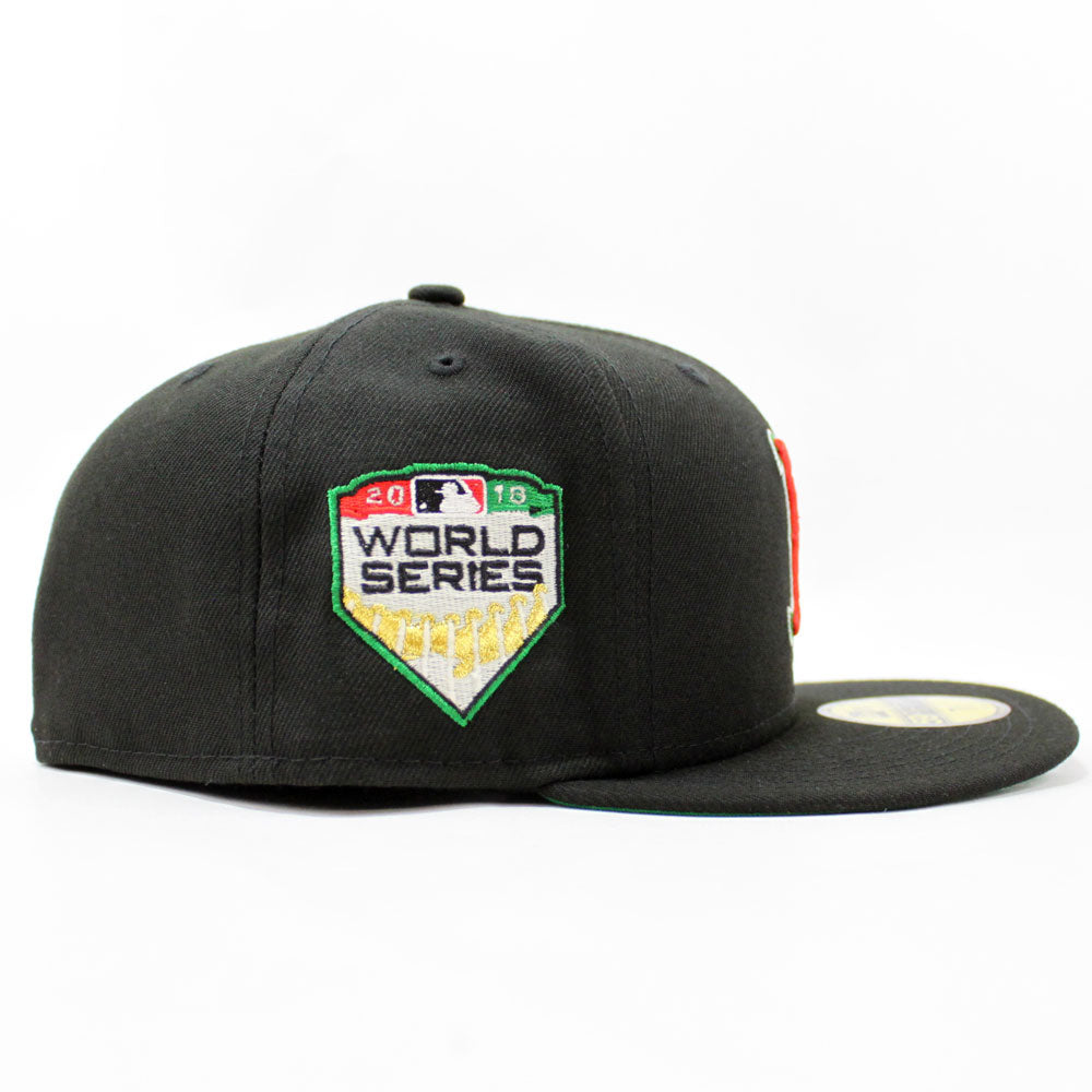 Boston Red Sox 2018 World Series 59Fifty New Era Fitted Hat is in Black & Green Under Brim.