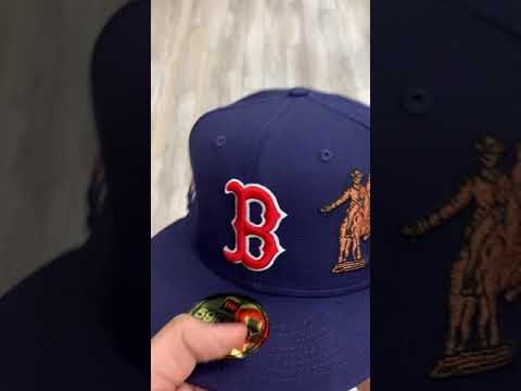 Boston Red Sox 8 Time World Series Champions 59Fifty New Era Fitted Hat is in Navy & Red Under Brim.