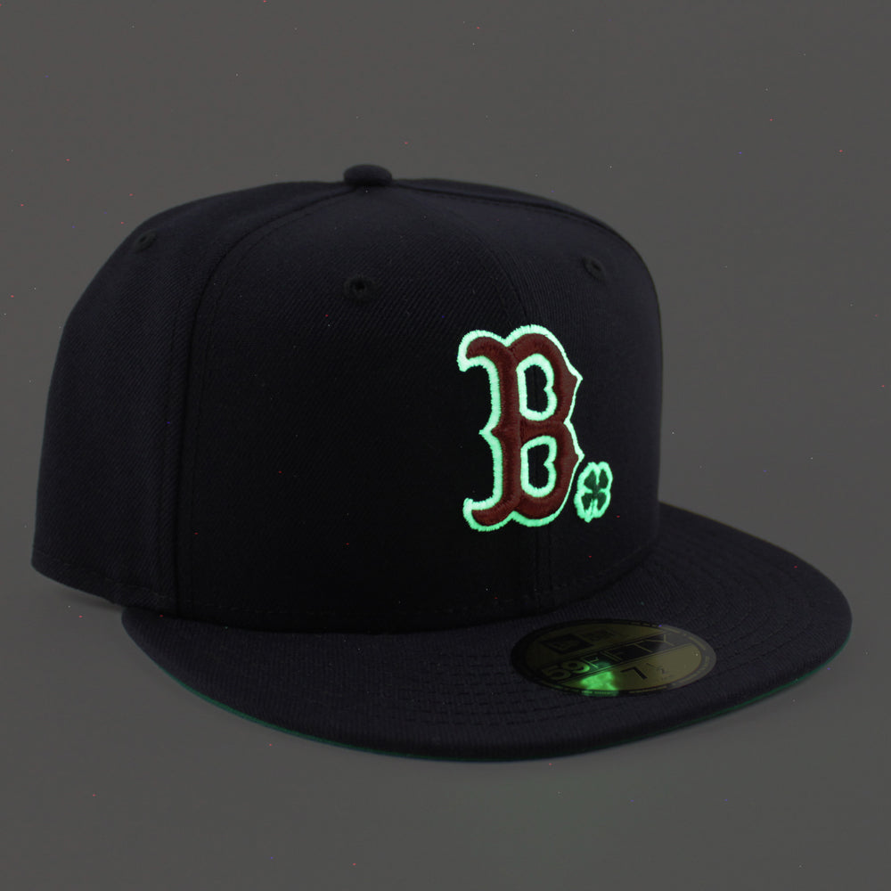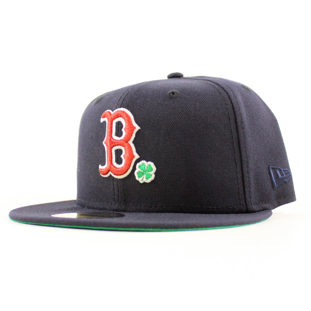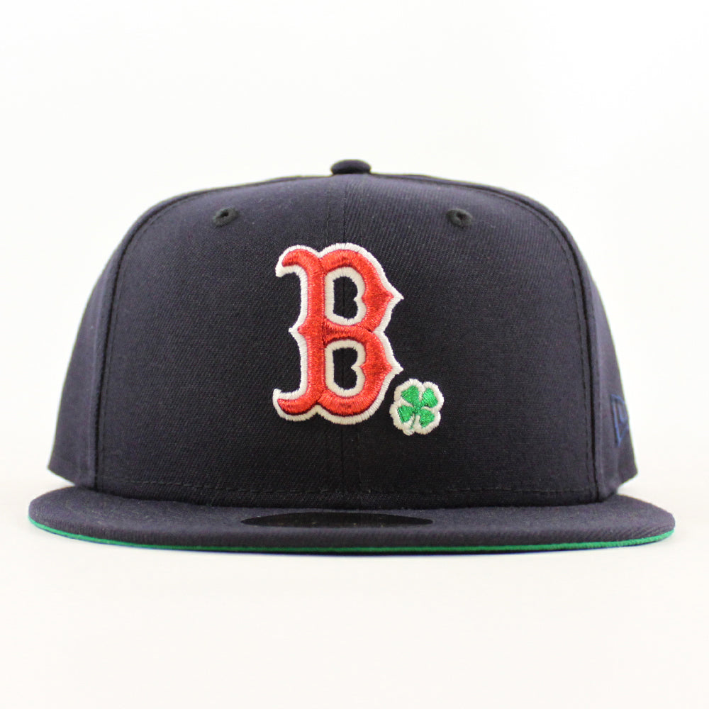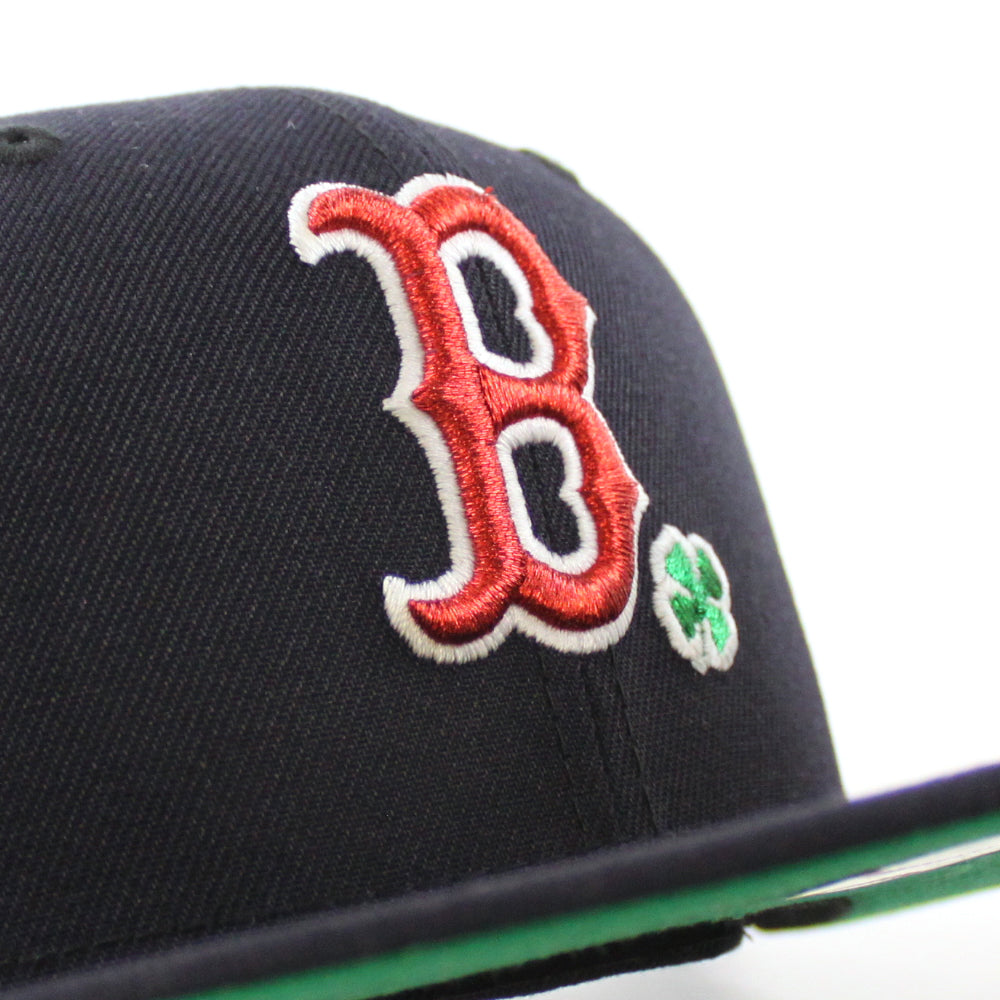 Boston Red Sox Clover New Era 59Fifty Fitted Cap in Navy and Green Under Brim.