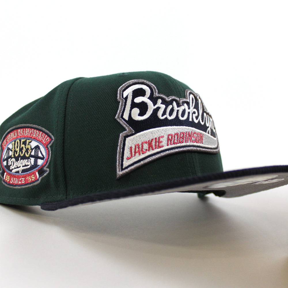 Brooklyn Dodgers 1955 World Series 59Fifty New Era Fitted Hat in Green, Navy and Gray Under Brim. 28