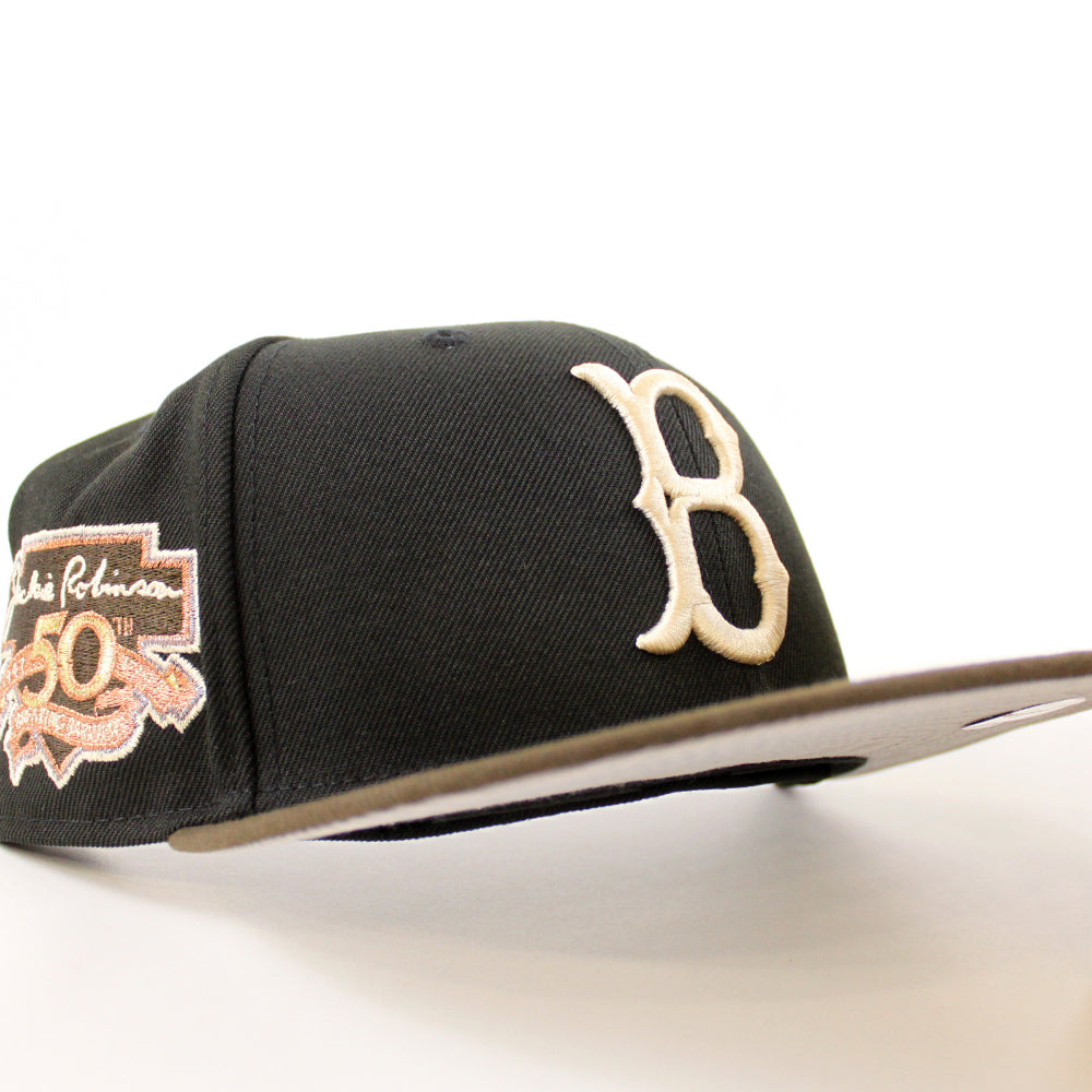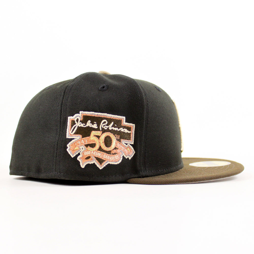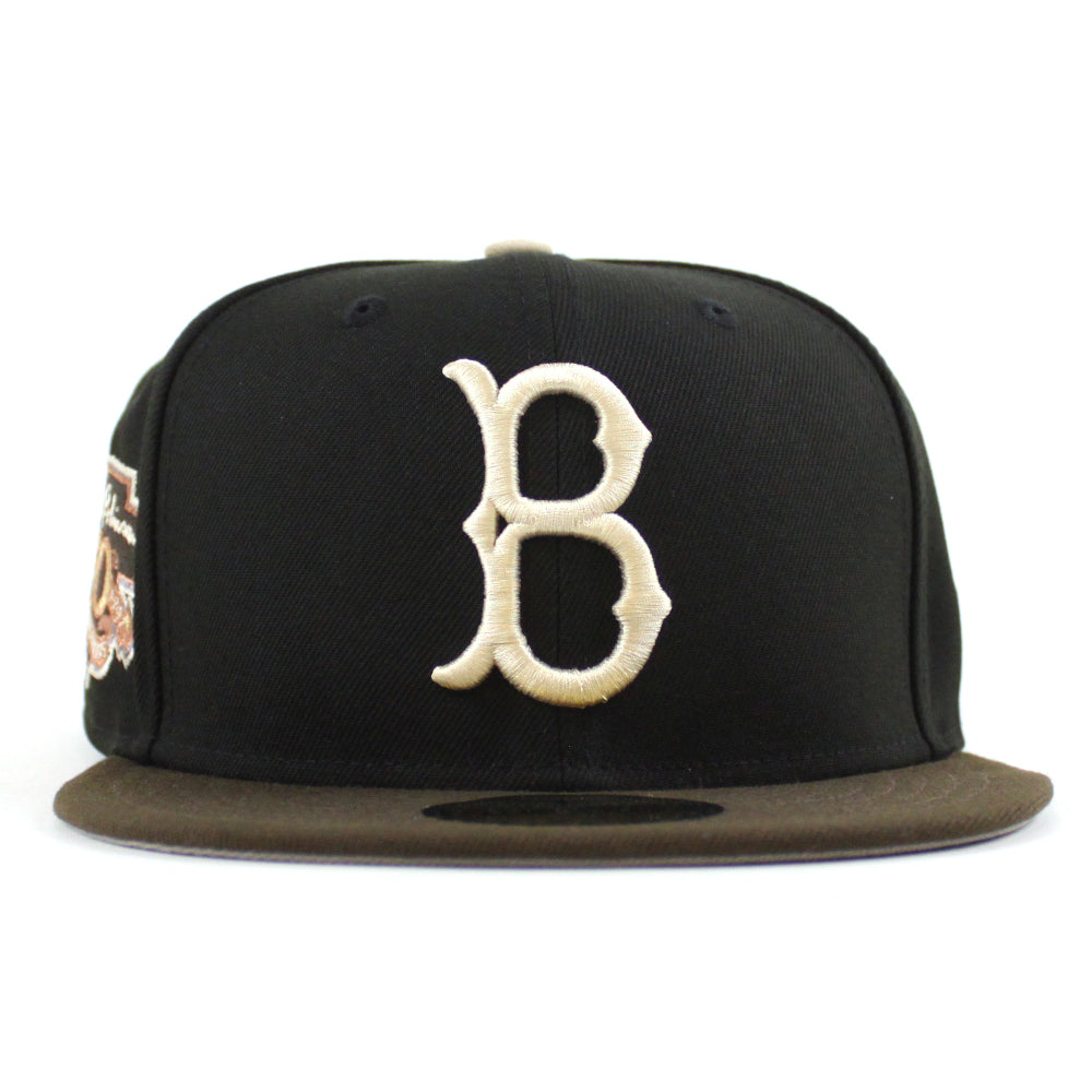 Brooklyn Dodgers 50th Anniversary New Era Fitted Hat in Black, Walnut and Gray Under Brim.