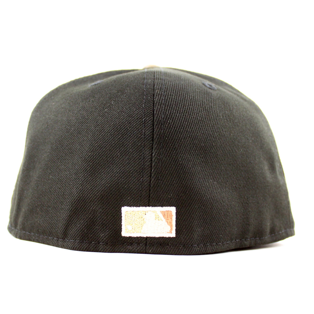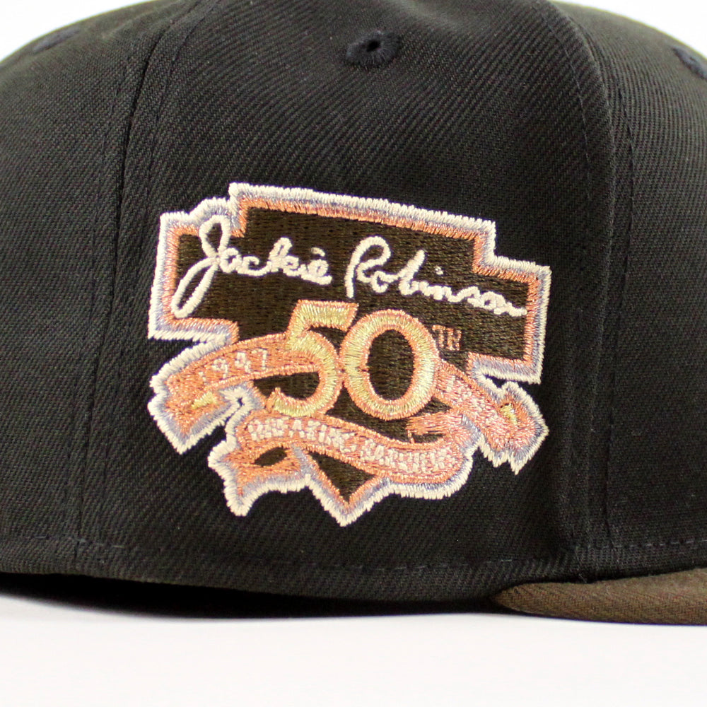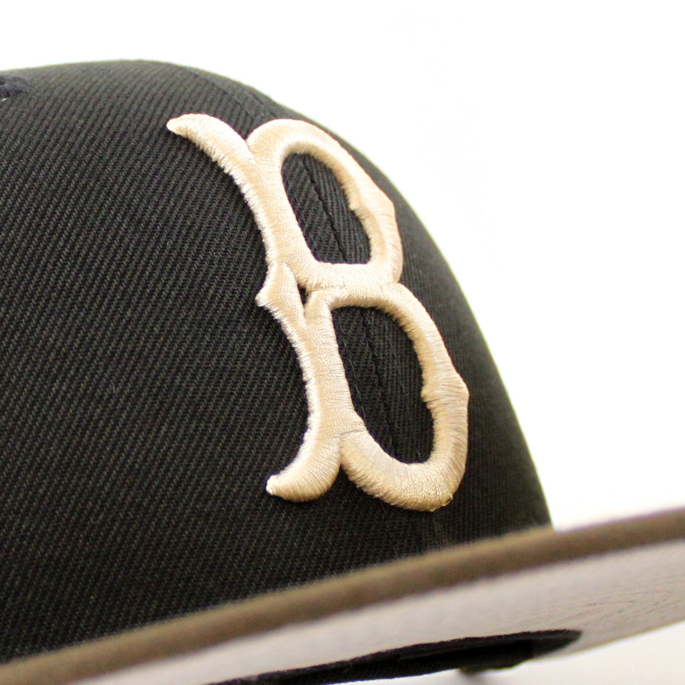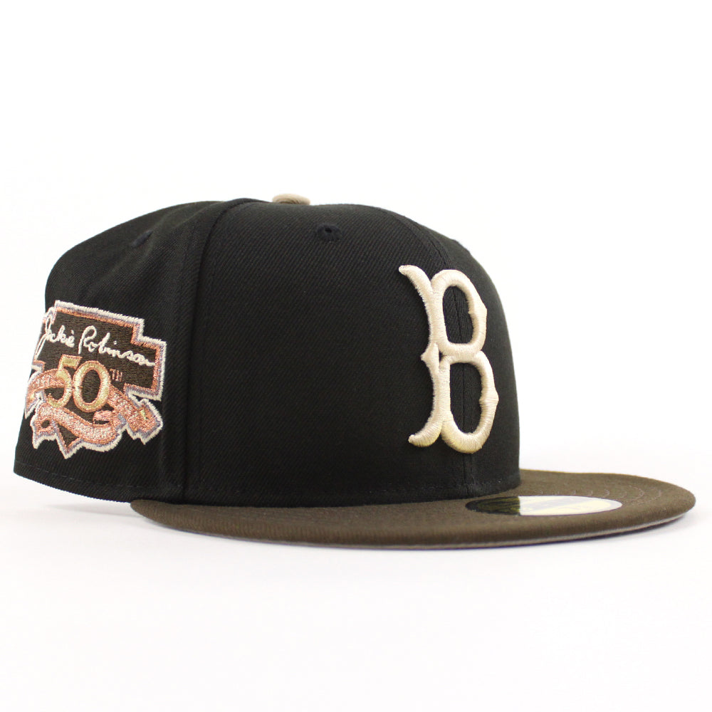 Brooklyn Dodgers 50th Anniversary New Era Fitted Hat in Black, Walnut and Gray Under Brim.