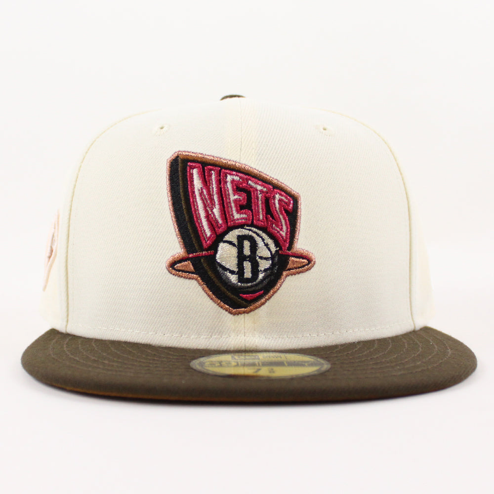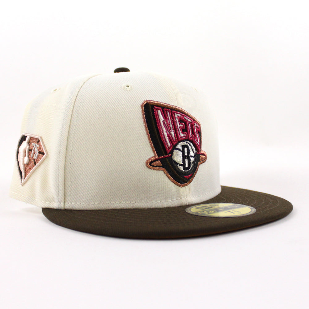 Brooklyn Nets 75 NBA New Era 59Fifty Fitted Hat (Chrome Walnut Khaki Under Brim)