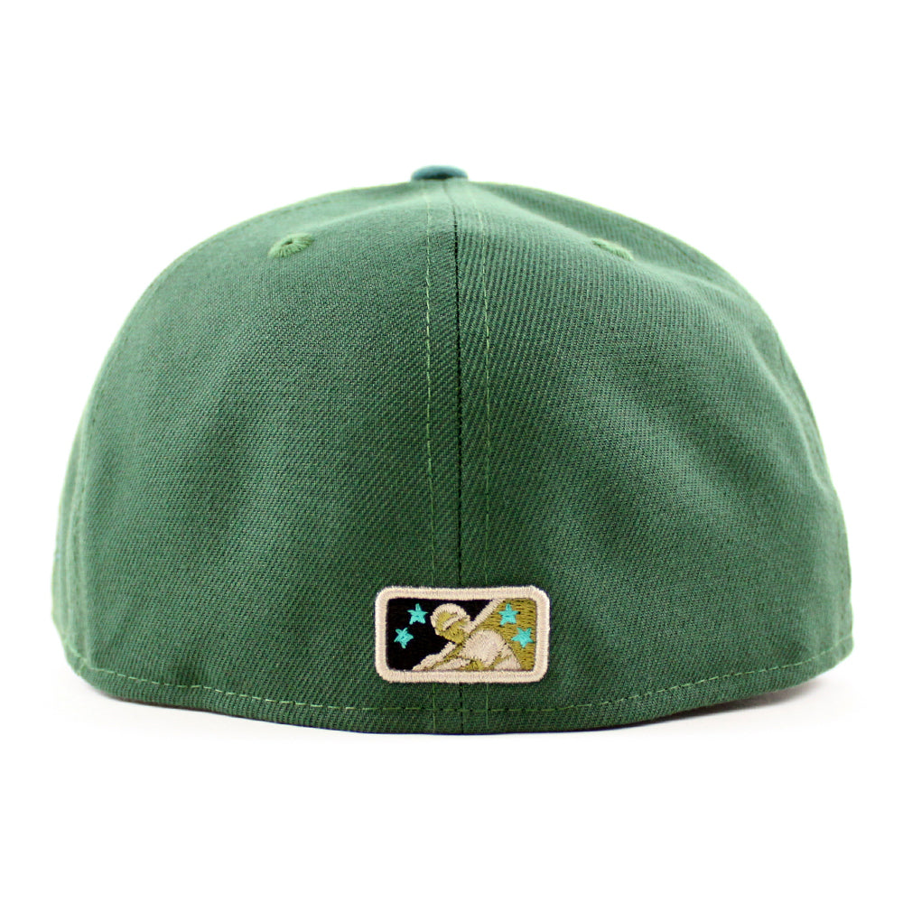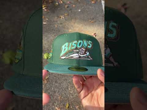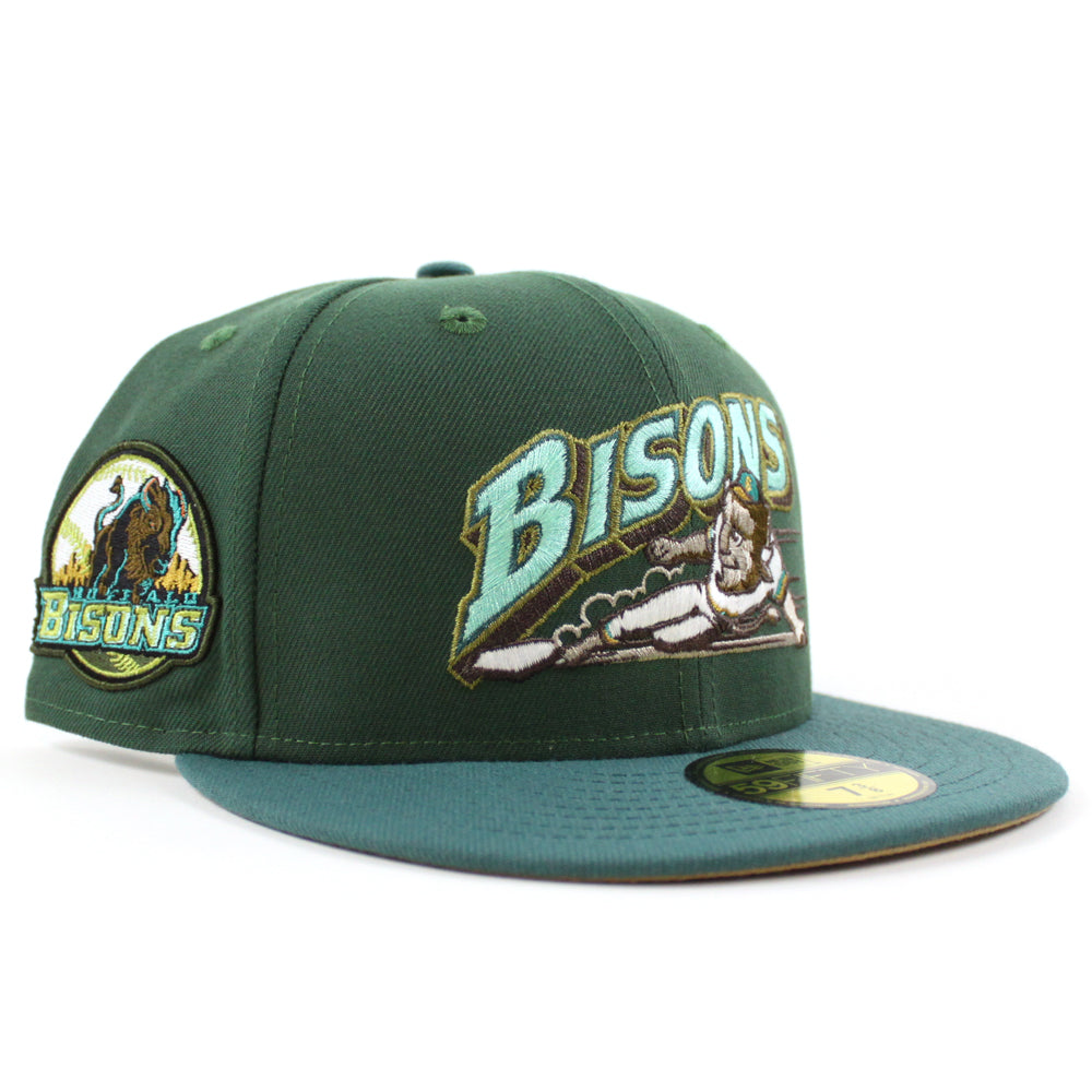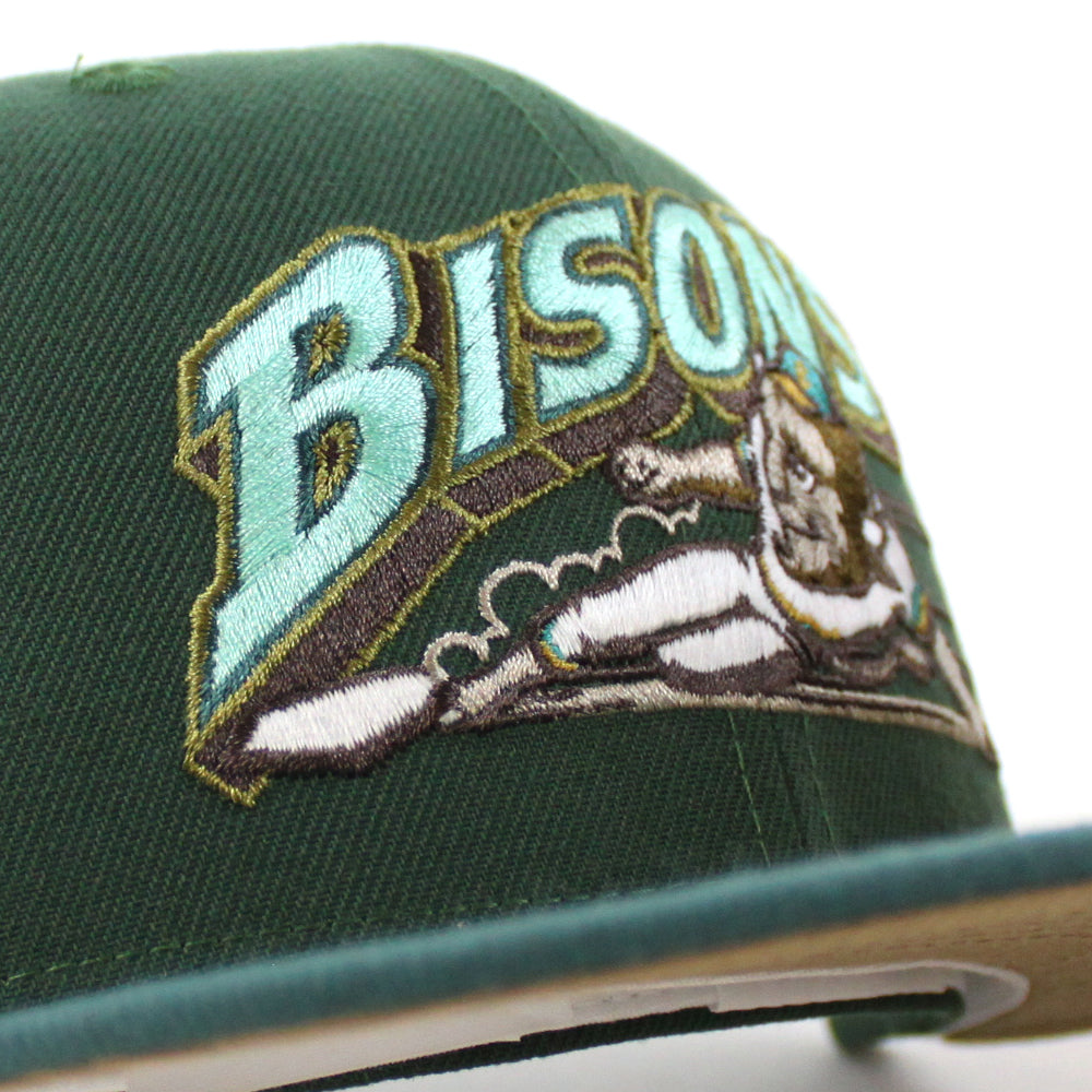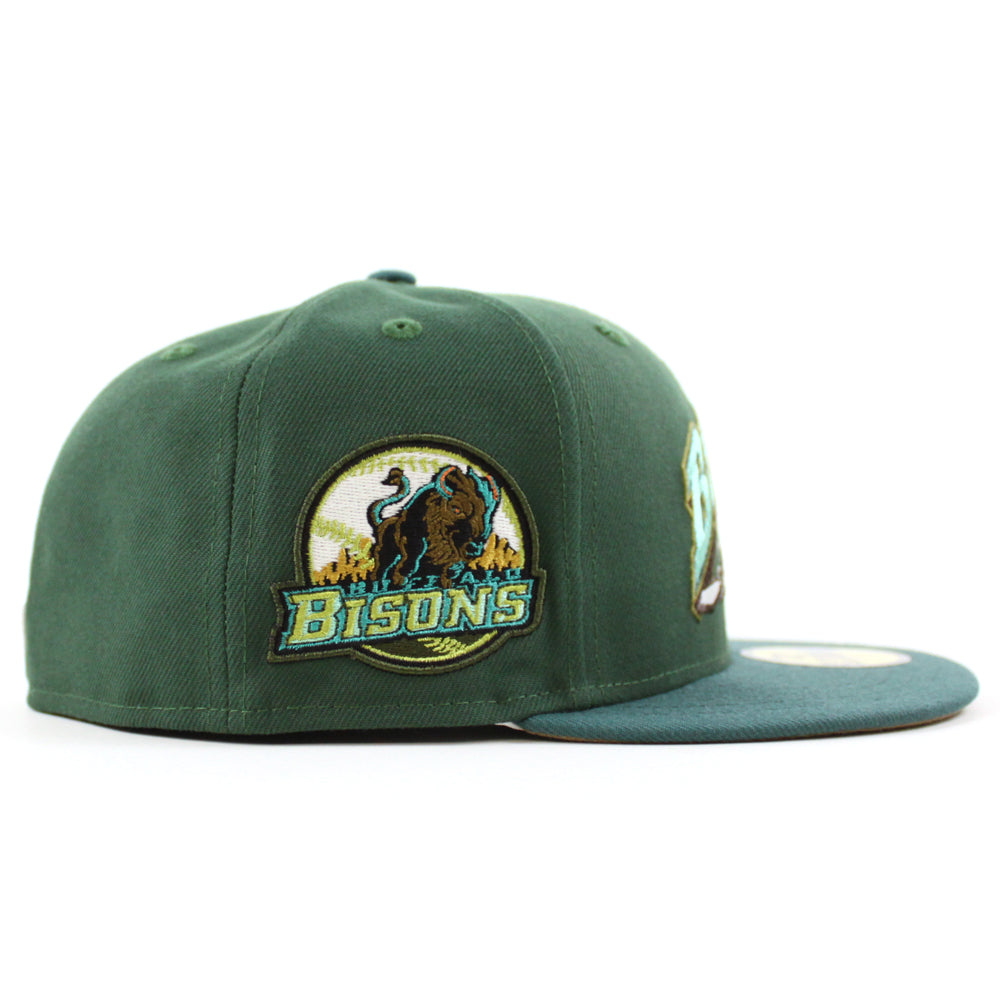Buffalo Bisons HOMETOWN COLLECTION New Era 59Fifty Fitted Cap in Pine Green, Needle Pine Green, and Khaki Under Brim.