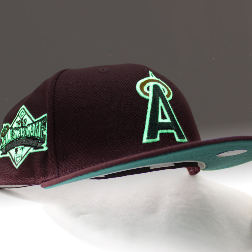 California Angels 1989 All-Star Game New Era 59Fifty Fitted Hat (GITD Maroon Teal Under Brim)