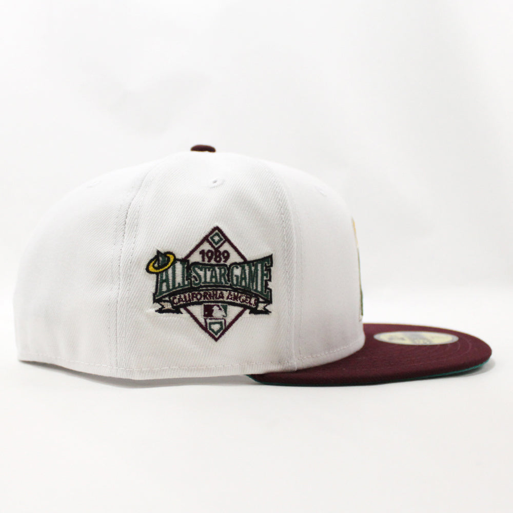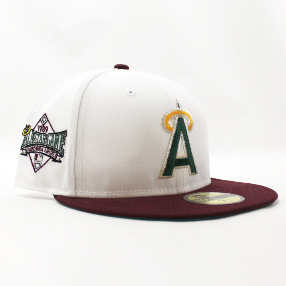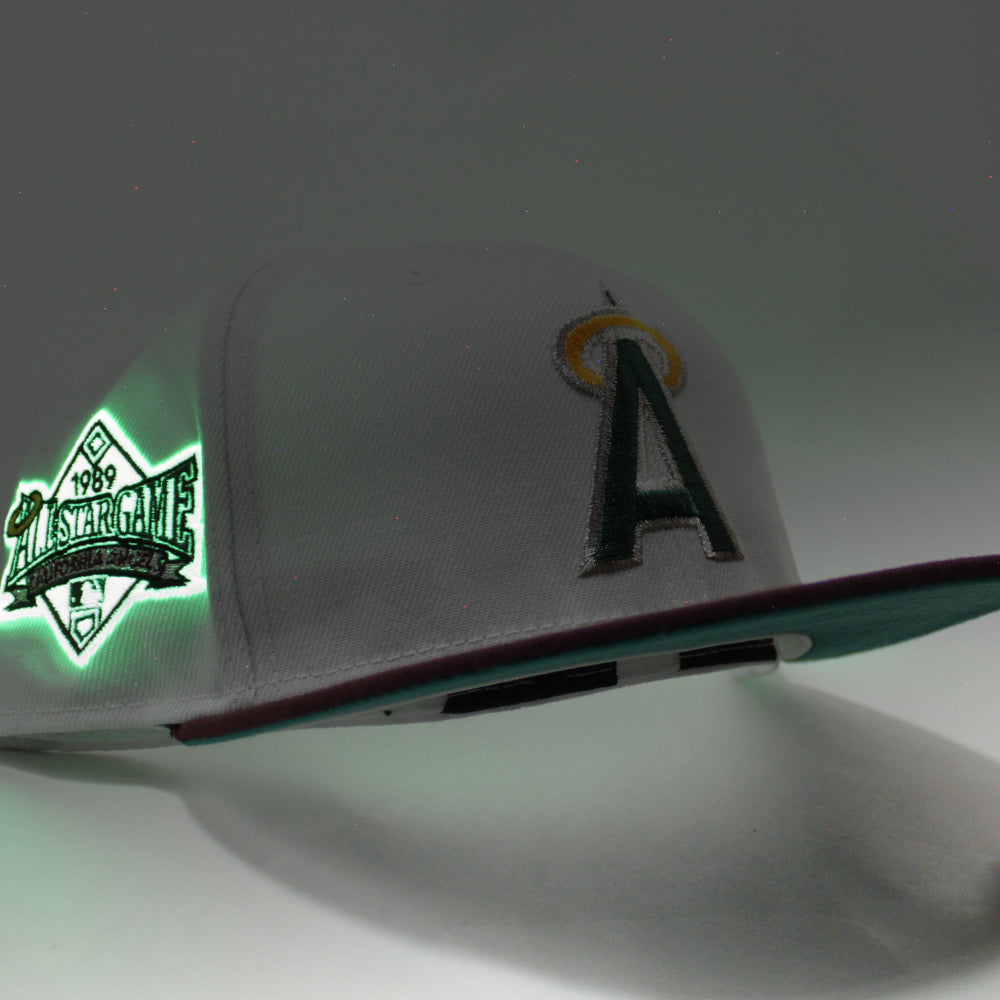California Angels 1989 All-Star Game New Era 59Fifty Fitted Hat in White, Maroon and Teal Under Brim.
