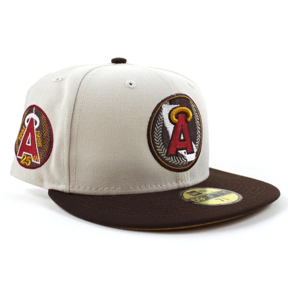 California Angels 25th Anniversary New Era 59Fifty Fitted Hat in Stone, Burnt Wood and Panama Tan Under Brim