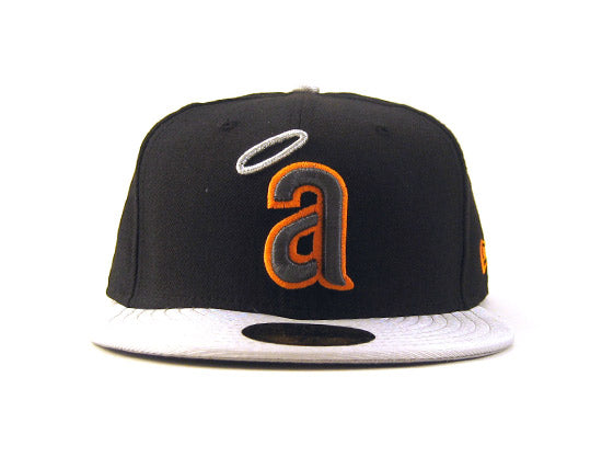 CALIFORNIA ANGELS 5950 NEW ERA FITTED HATS (BLACK METALLIC SILVER ORANGE)