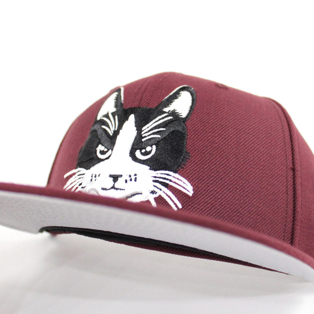 Cat New Era 59Fifty Fitted Hats (Maroon Gray Under Brim)