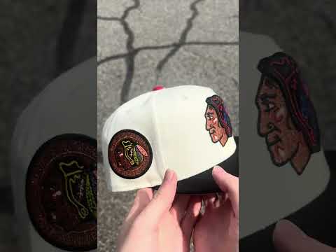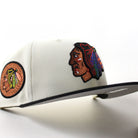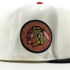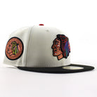 Chicago Blackhawks Black Hawks Logo New Era 59Fifty Fitted Hat in Chrome White, Black and Gray Under brim.