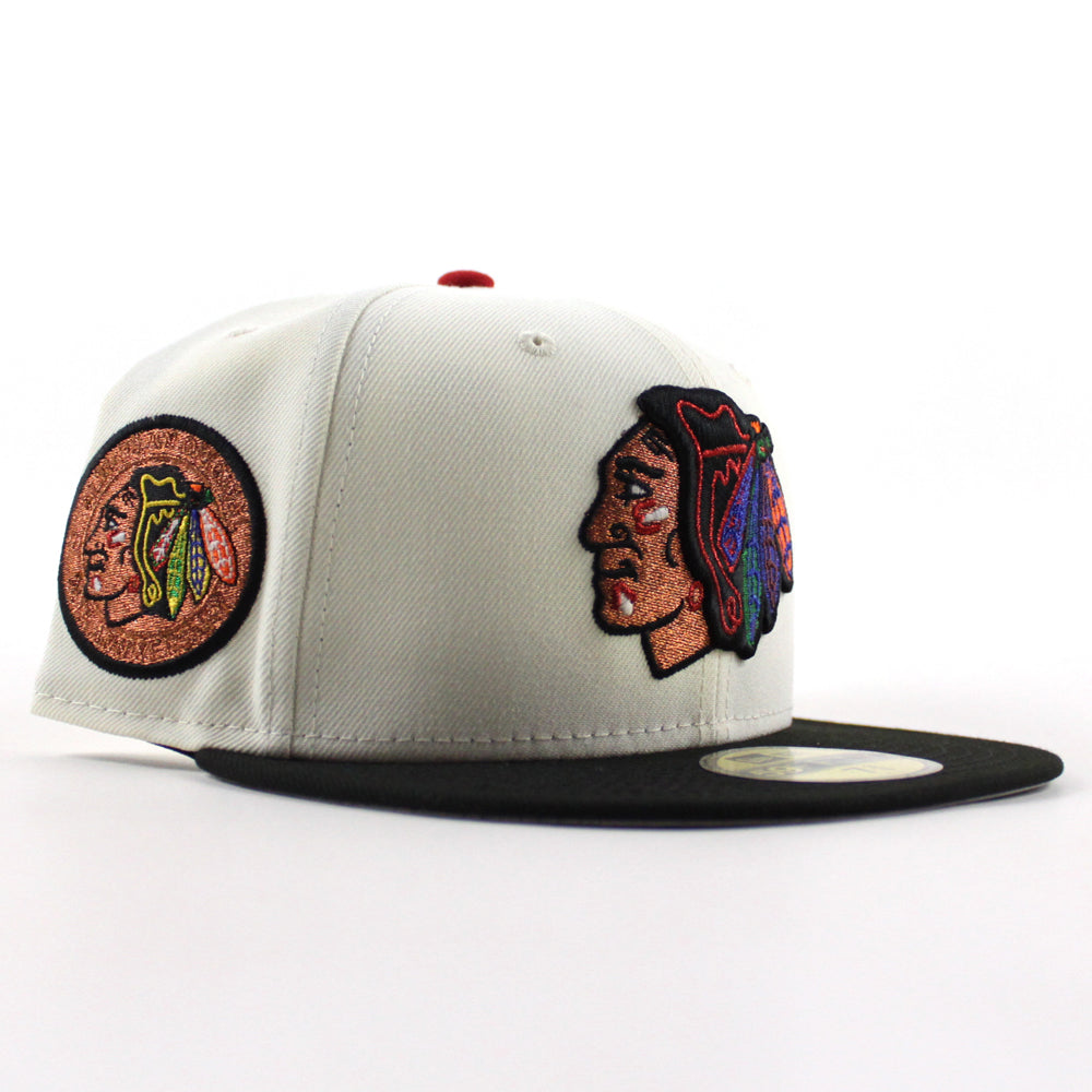 Chicago Blackhawks Black Hawks Logo New Era 59Fifty Fitted Hat (Chrome White Black Gray Under brim)