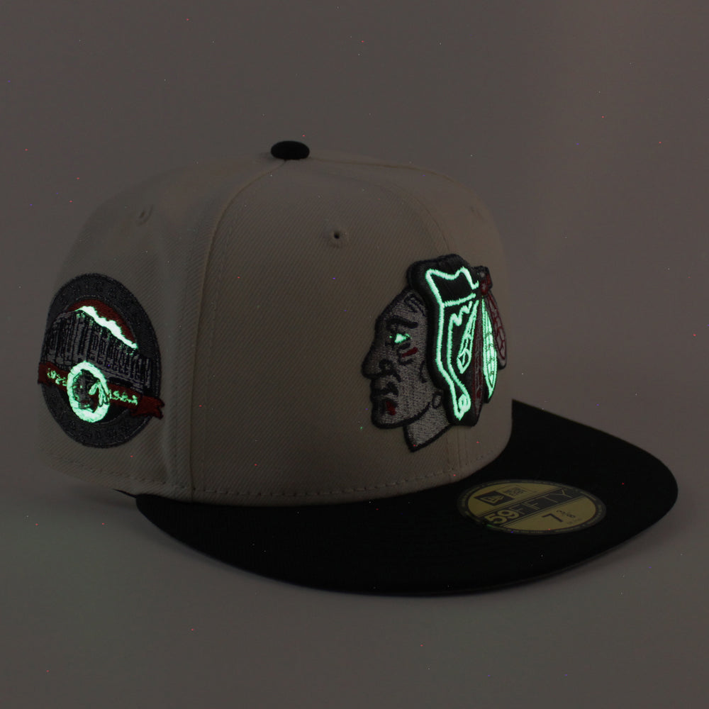 Chicago Blackhawks Chicago Stadium New Era 59Fifty Fitted Hat in Chrome White, Black and Gray Under brim.