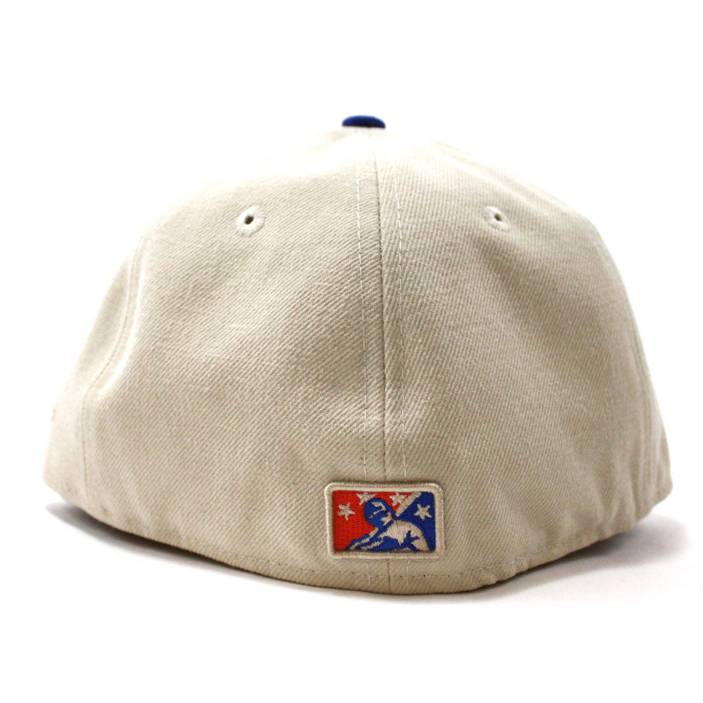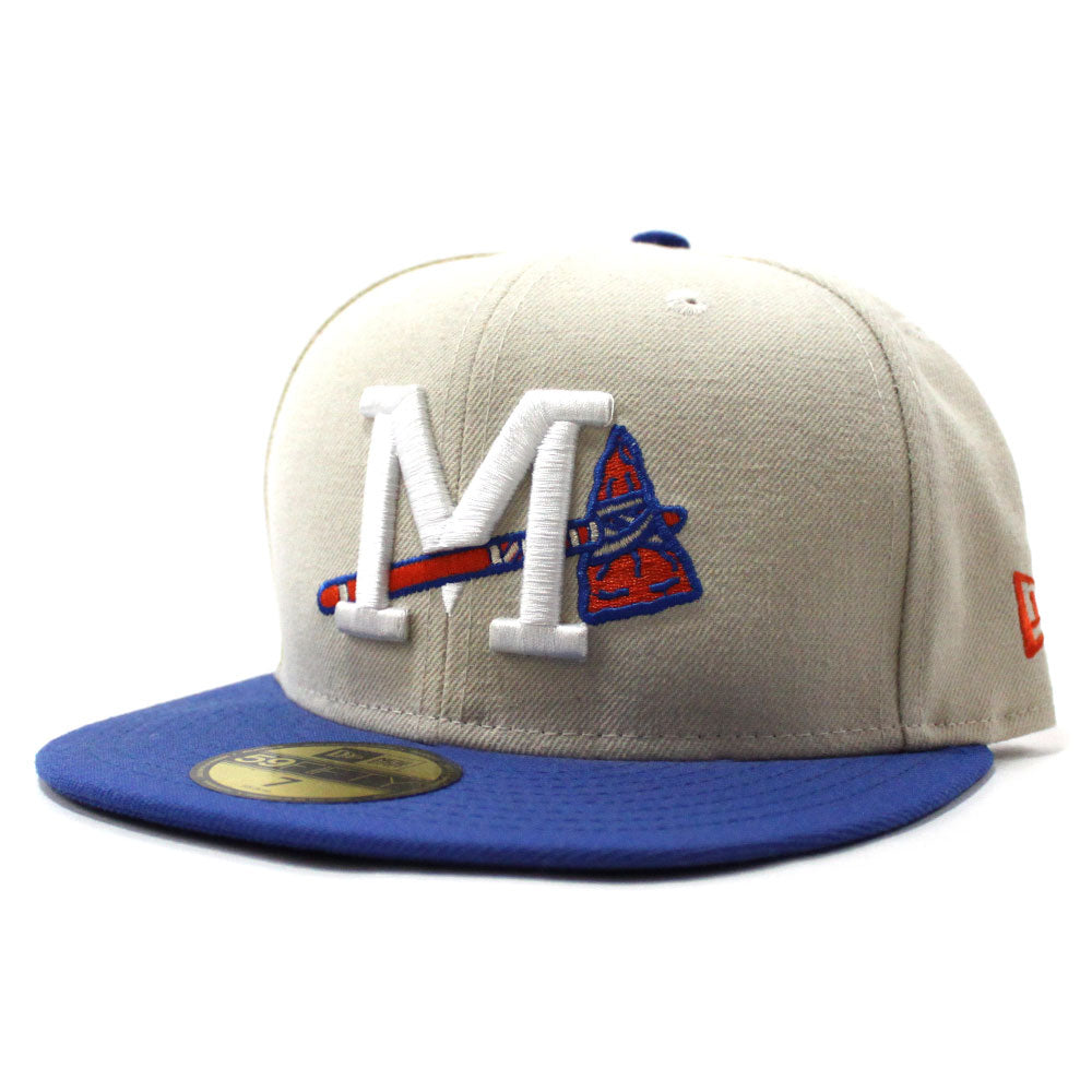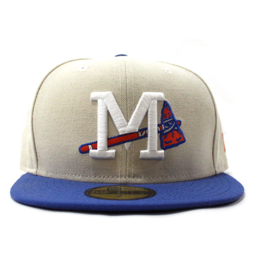 Mississippi Braves New Era 59Fifty Fitted Hat in Cream, Blue & Orange.