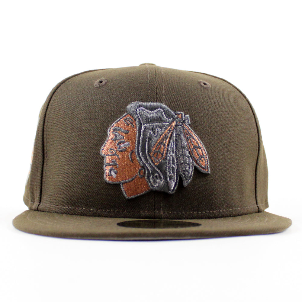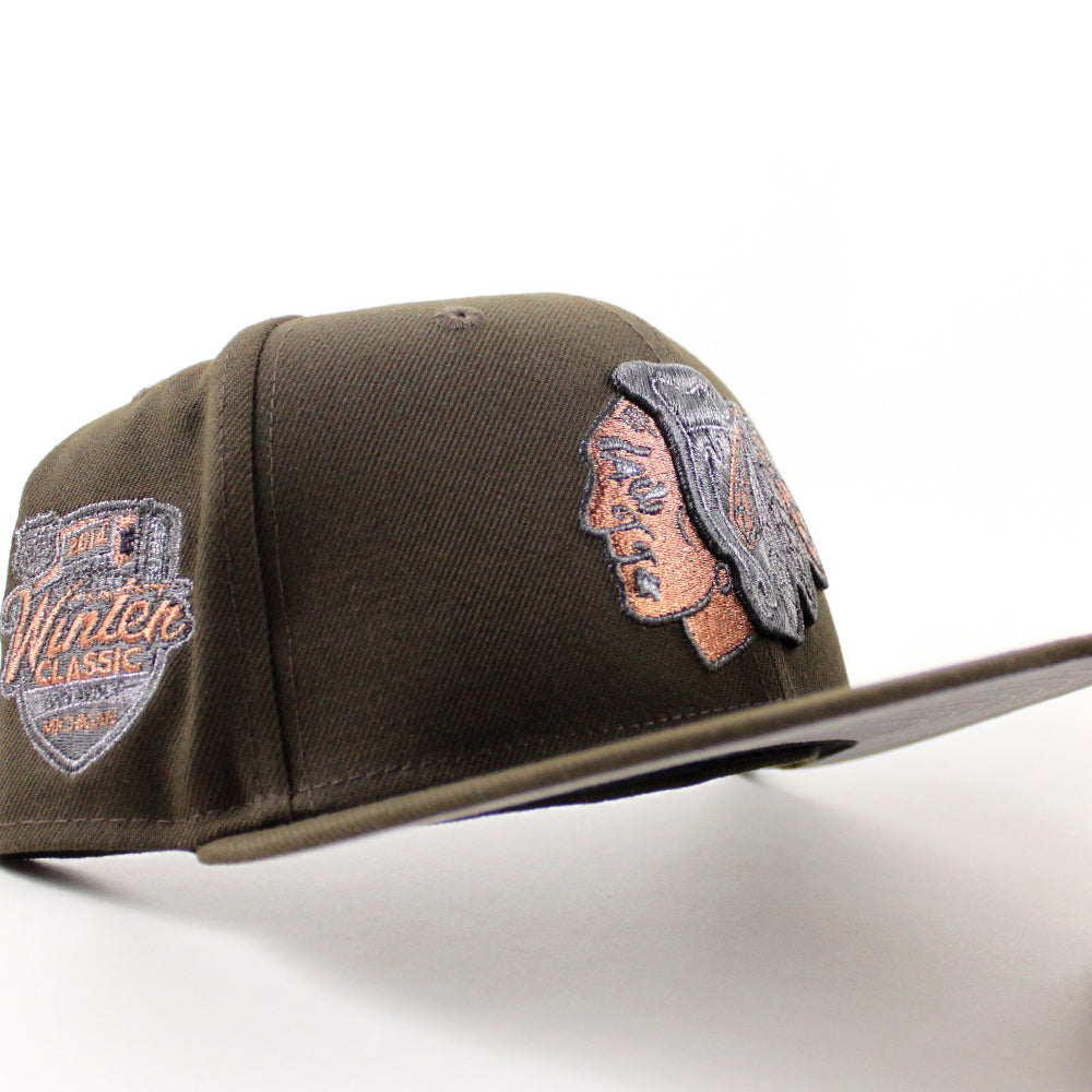 Chicago Blackhawks Winter Classic New Era 59Fifty Fitted Hat in Walnut and Gray Under brim.