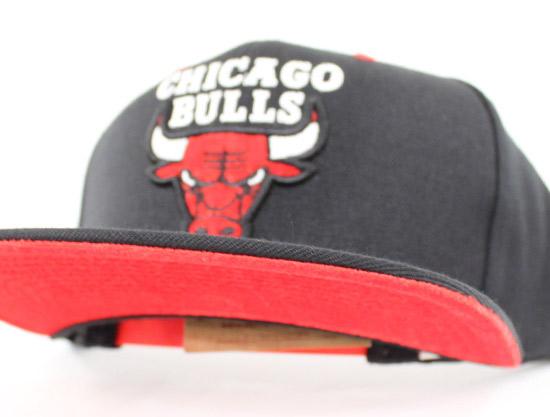 Chicago Bulls Mitchell and Ness Snapback hats in Black with a Red Velour Under Brim.