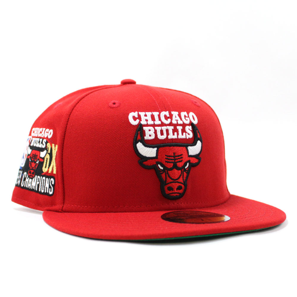 Chicago Bulls 6 X NBA Champs New Era 59fifty Fitted Hat (Red Green Under Brim)