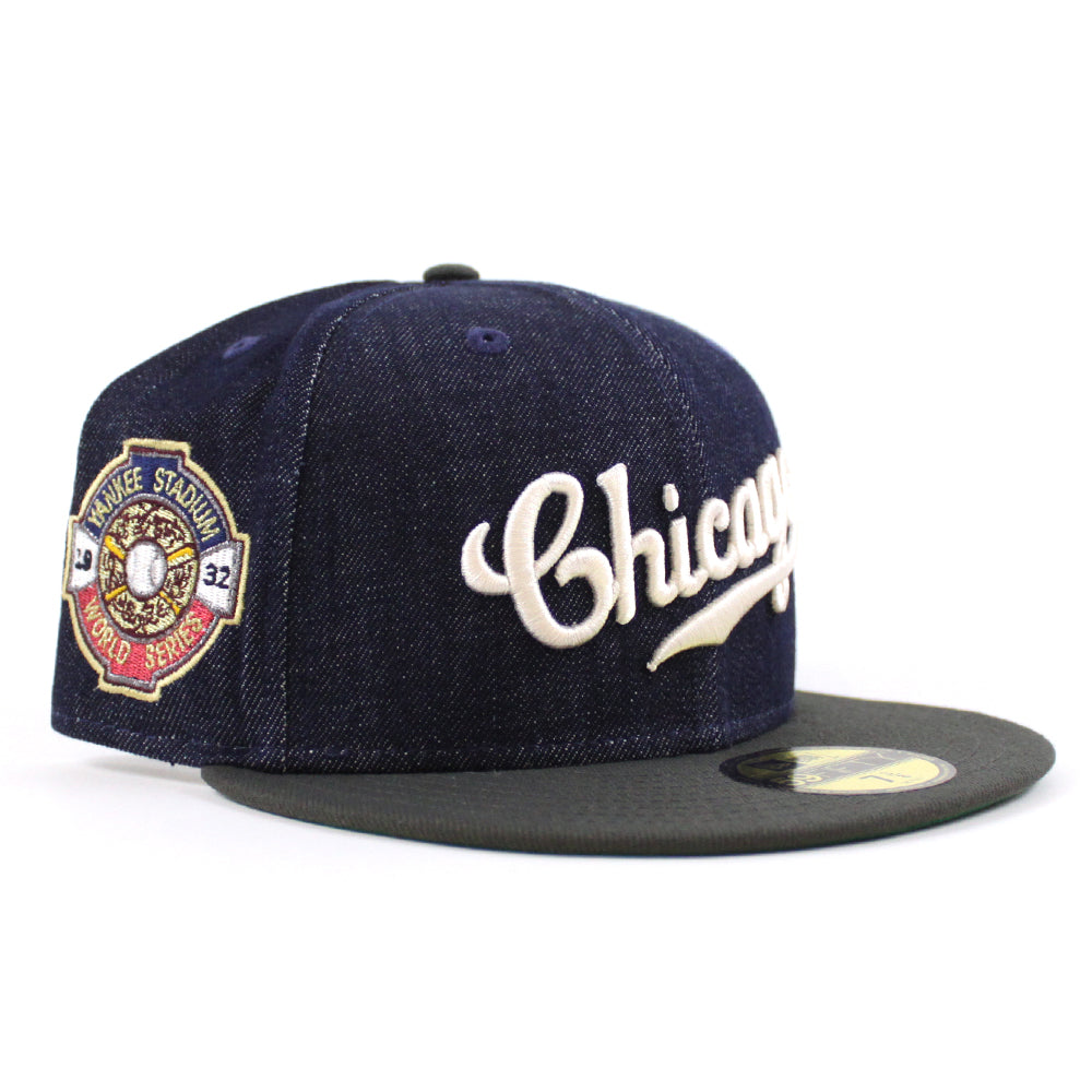 Chicago Cubs 1932 World Series 59Fifty New Era Fitted Hat in Navy, Dark Gray and Green Under Brim.
